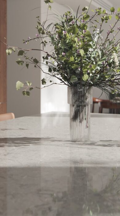 Kvarts är ett innovativt kompositmaterial som kombinerar naturliga kvartskristaller med bindemedel för att skapa den perfekta bänkskivan för moderna hem. Dess porfria yta gör den mycket motståndskraftig mot både värme, kyla, yttre tryck och vätskor, vilket gör den idealisk för köksbänkskivor och badrumytor där hygien och praktikalitet är avgörande. Den icke-porösa ytan förhindrar tillväxten av bakterier, mögel och mjöldagg och eftersom den är porfri kan inte vätska absorberas av stenen, vilket betyder att du slipper bekymra dig om fläckar eller regelbunden impregnering. Kvarts finns tillgängligt i ett brett utbud av färger och mönster från marmorliknande designer till moderna enfärgade alternativ, och för daglig rengöring är en mikrofiberduk fuktad med vatten tillräcklig, vilket gör det till ett praktiskt val för daglig användning.