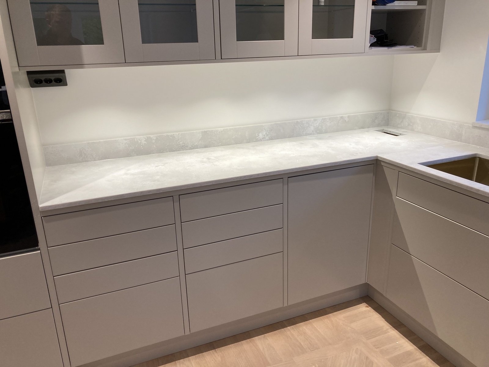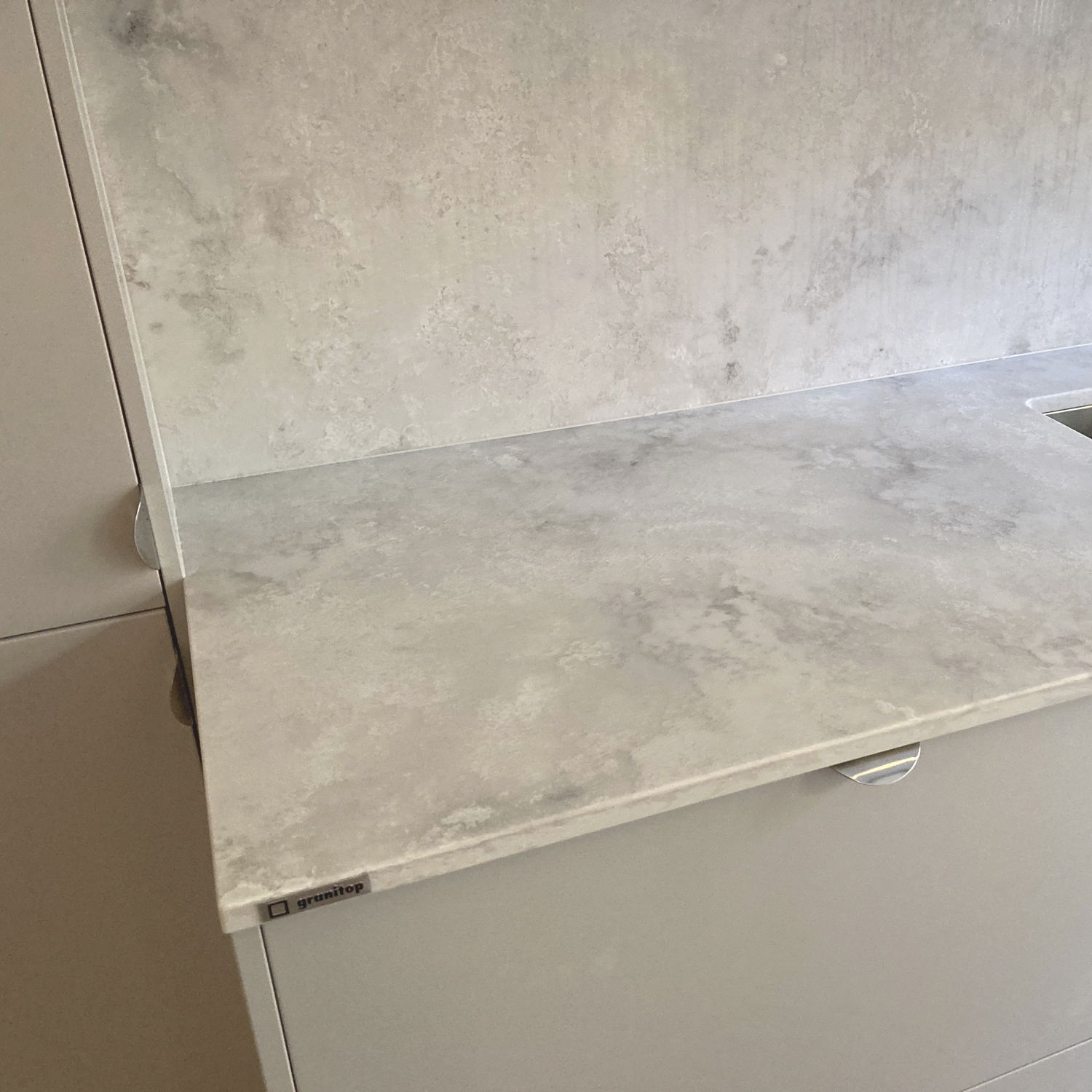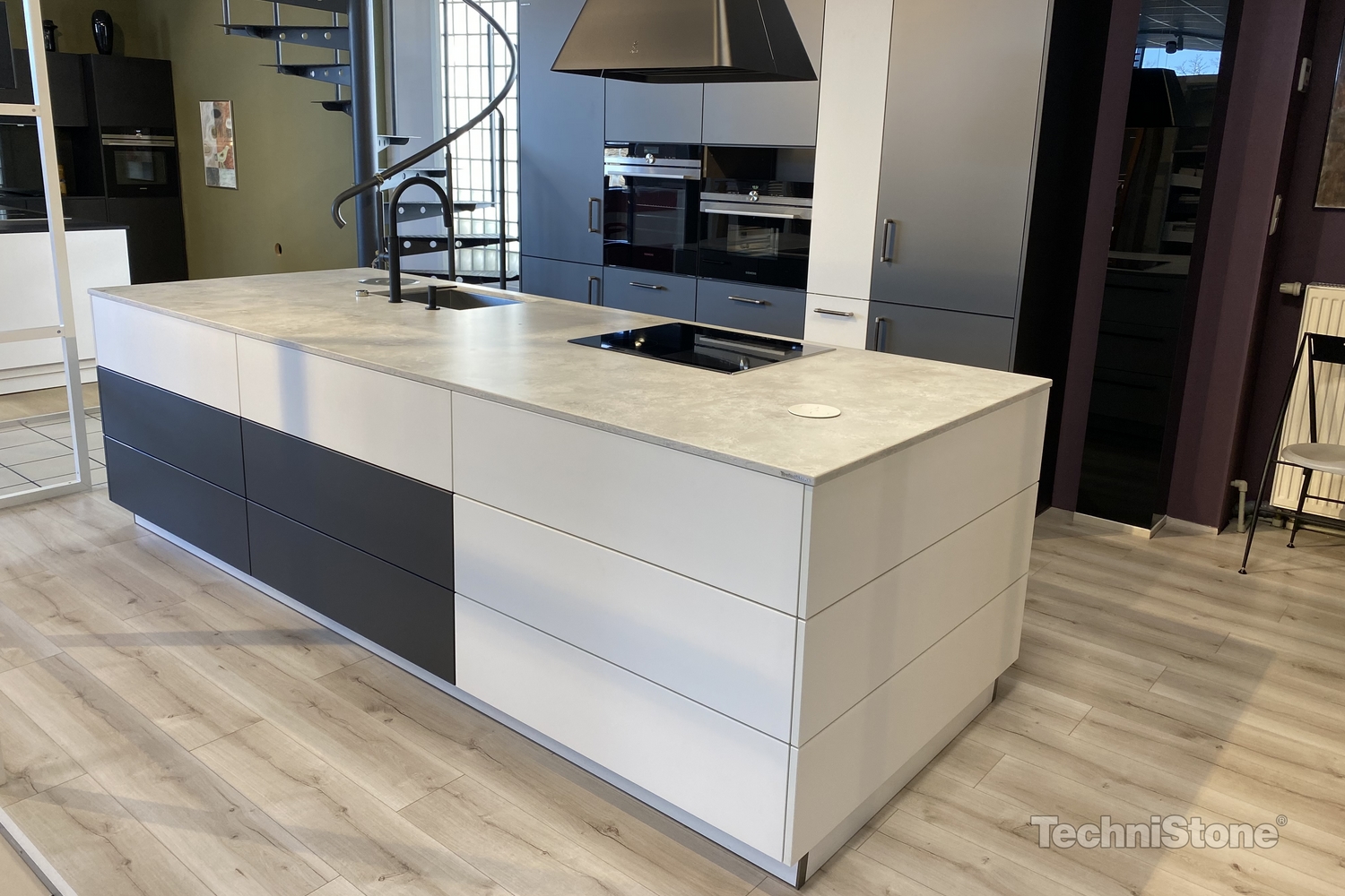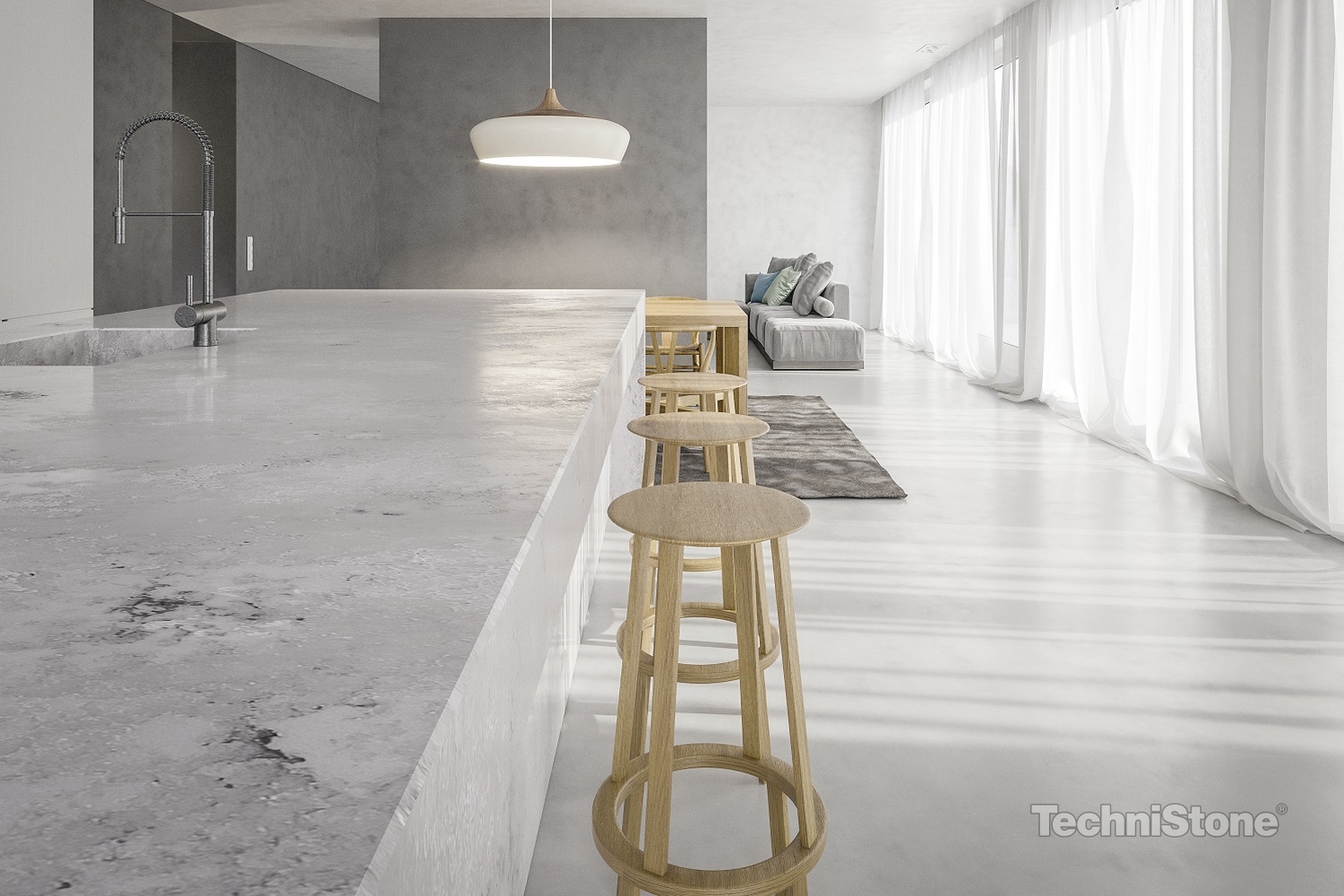 Kompositstenskivor i Ambiente Light material är starka, hållbara och extremt hygienisk! Den grå färgen ger köket en modern och lugn bakgrund och förhöjer alla andra föremåls djärvare färger.