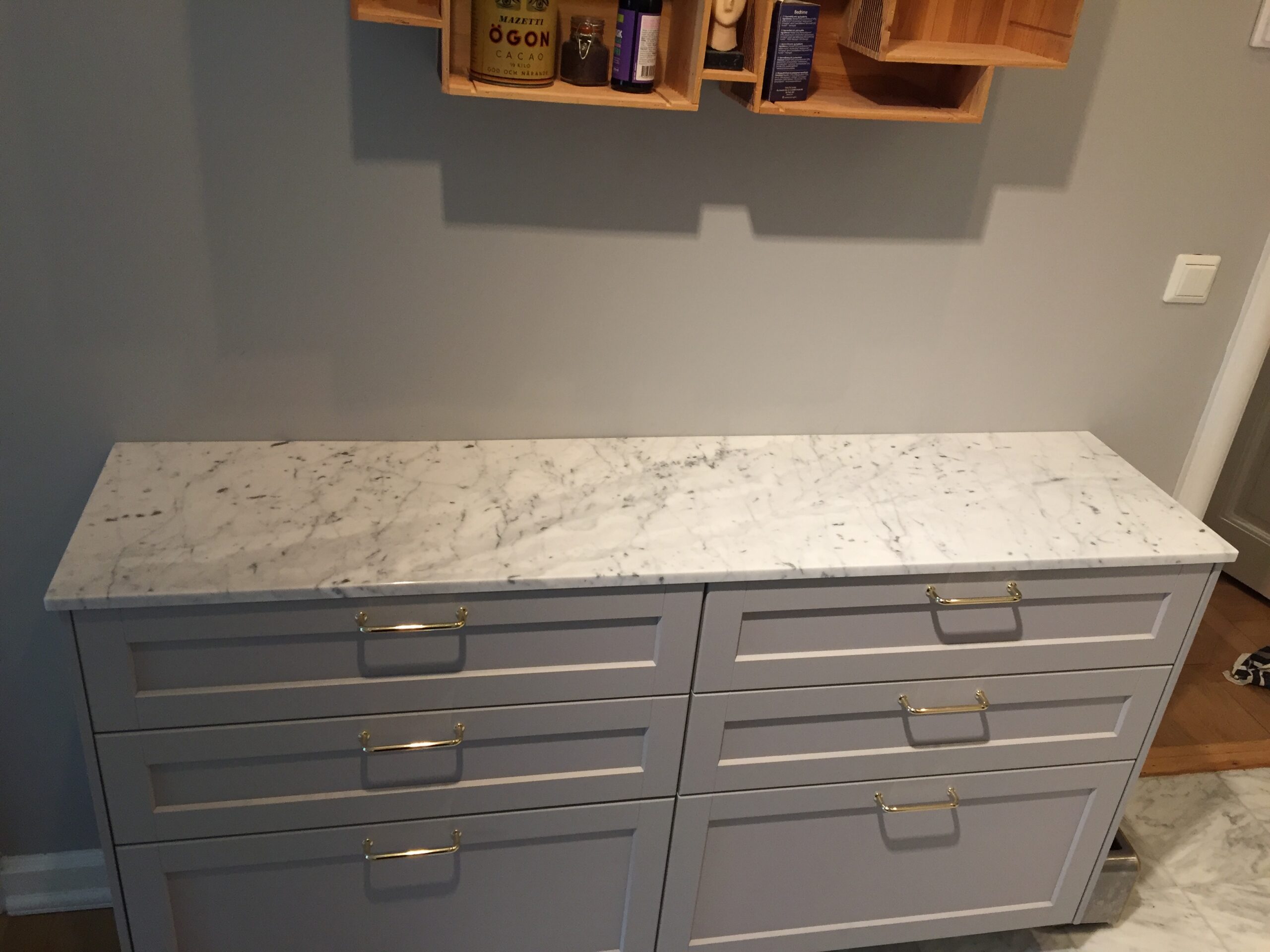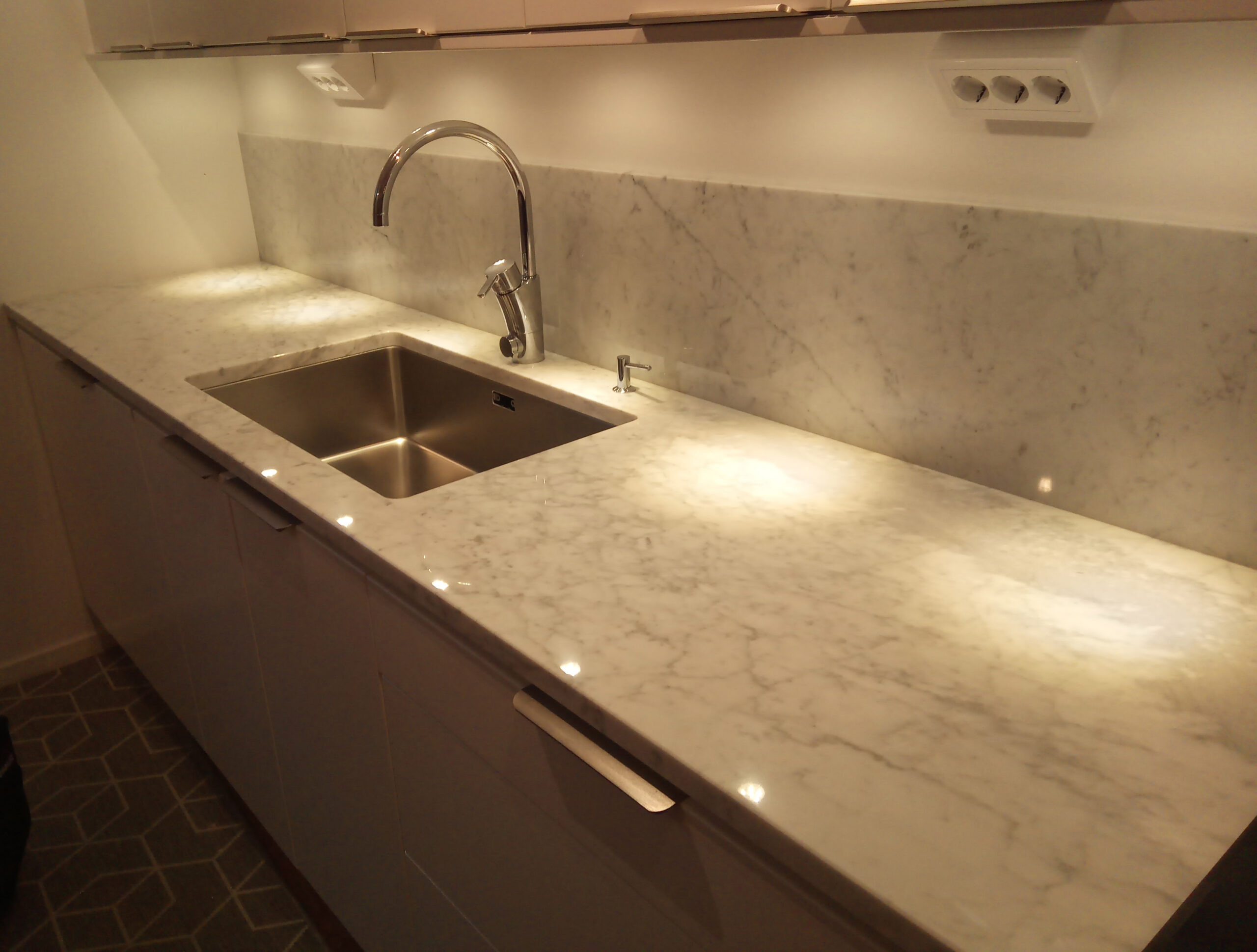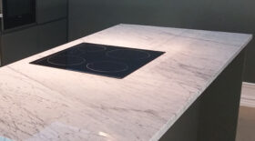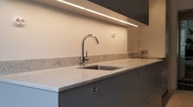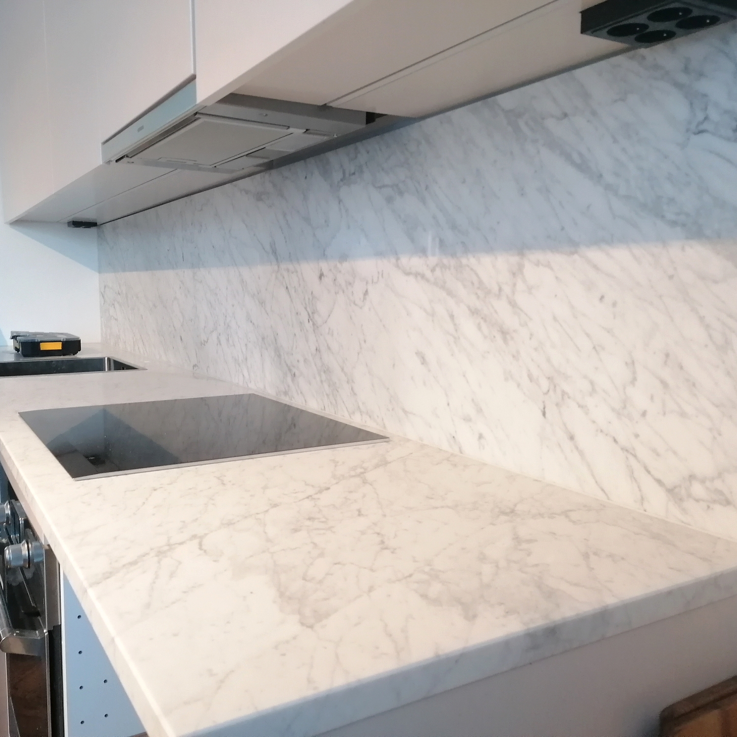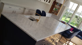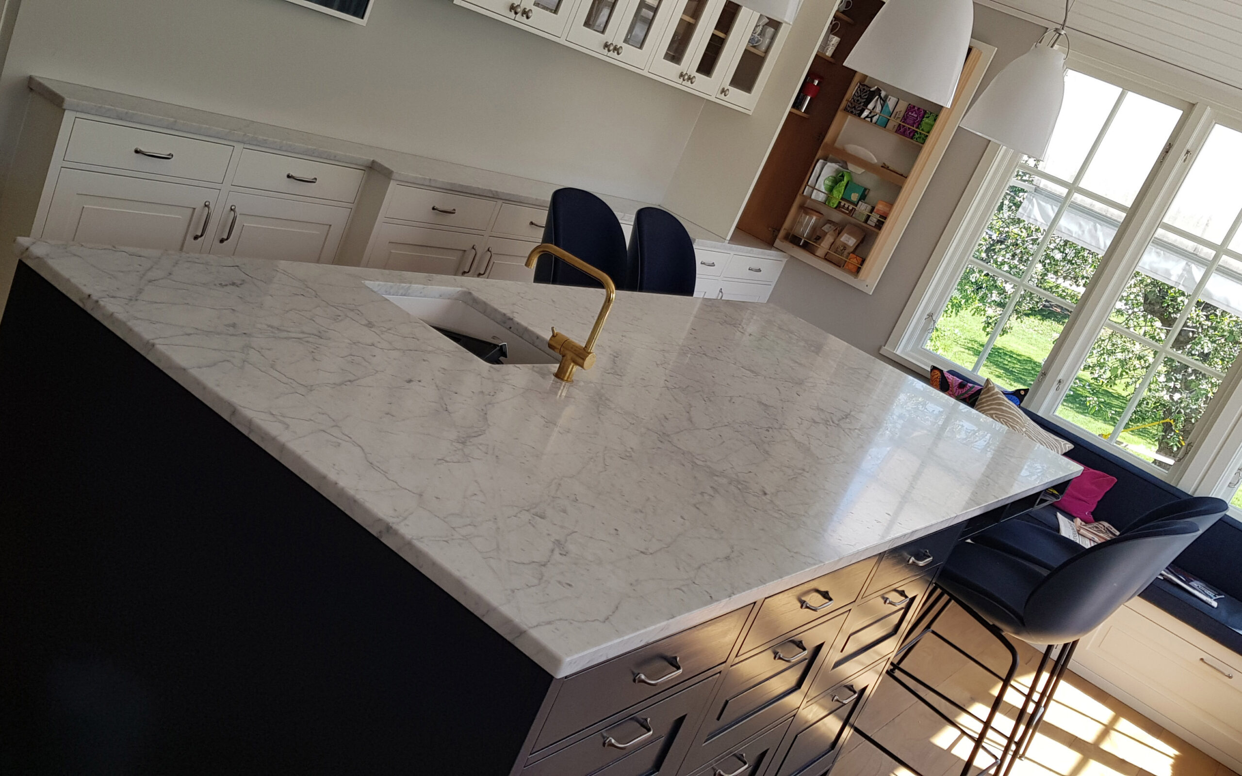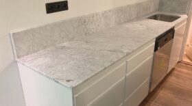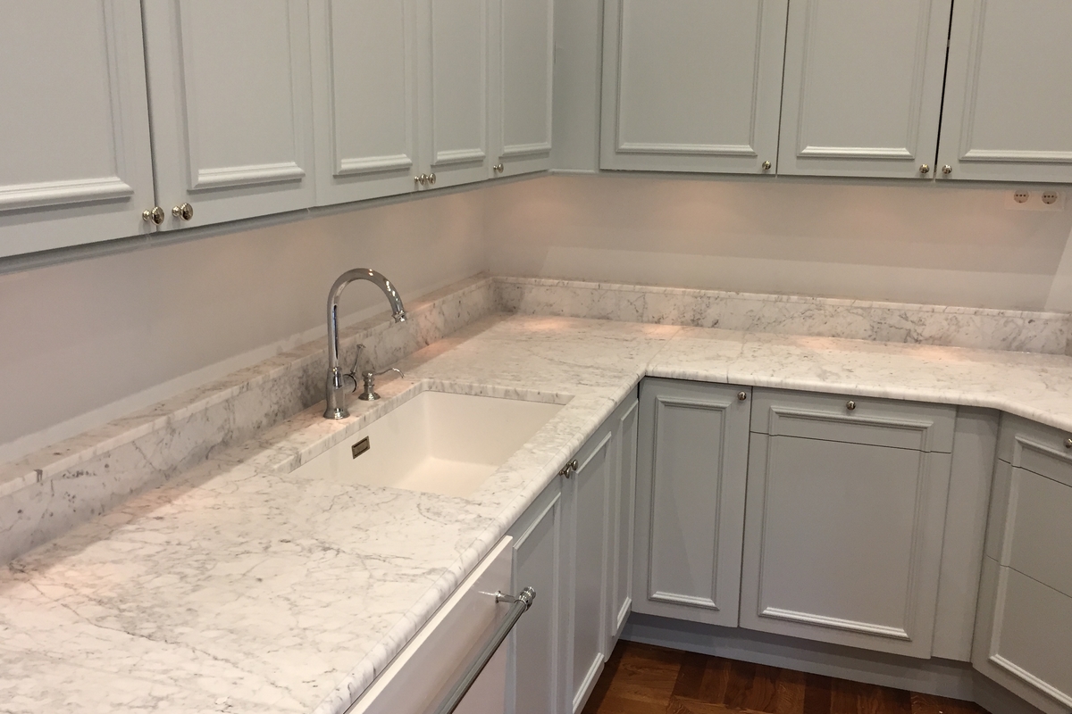 Bänkskivor i marmorn Bianco Carrara är perfekta tillsammans med ljusa och svarta skåpluckor. Genom att välja en bänkskiva i Bianco Carrara kommer du att skapa ett tidlöst kök eller badrum – denna sten kommer att lysa upp varje rum!