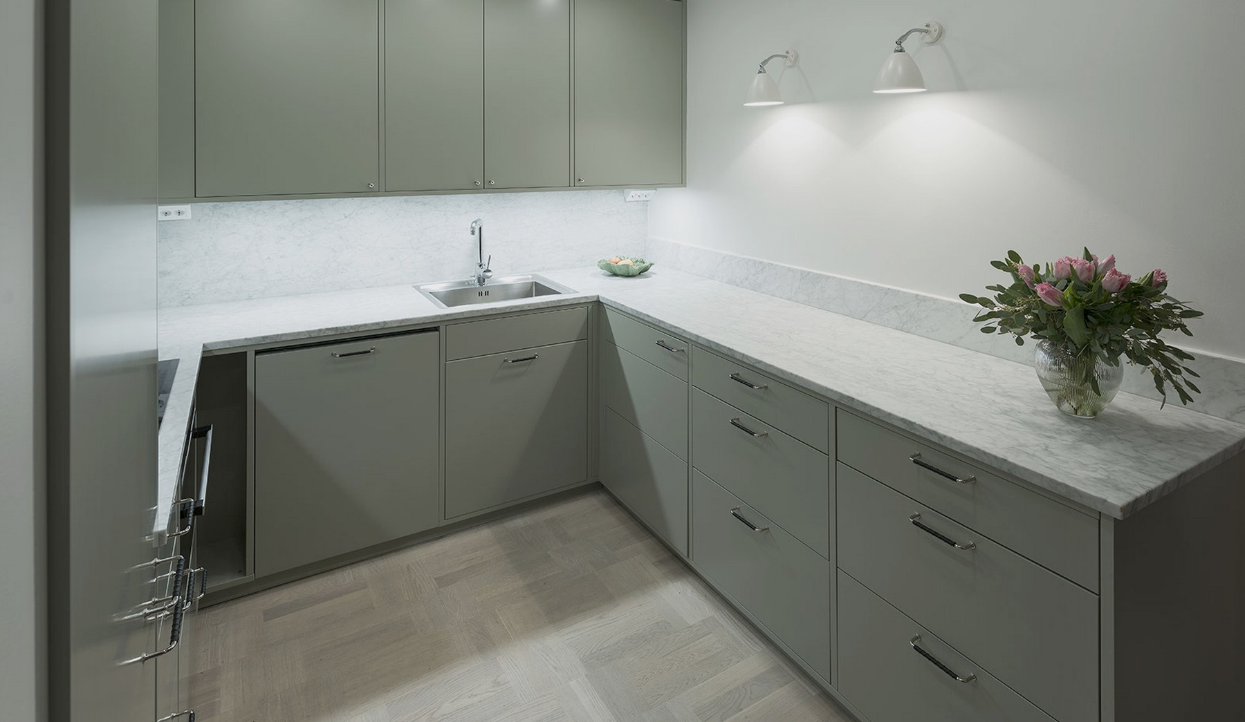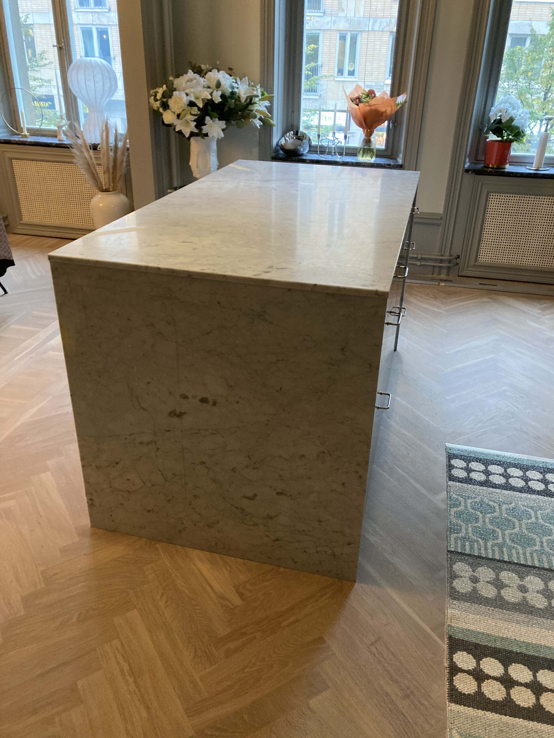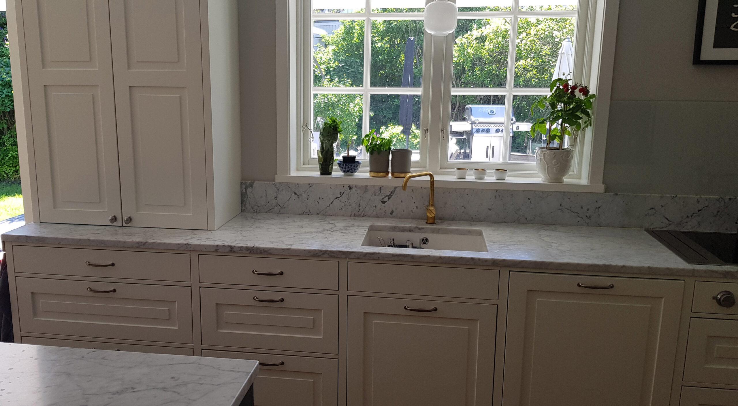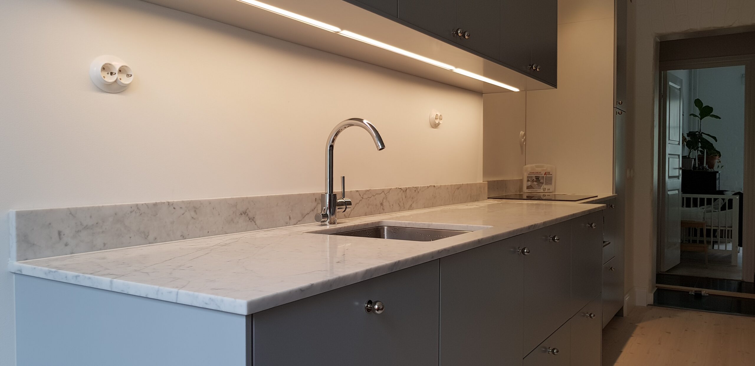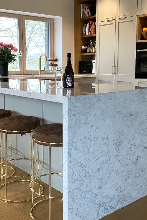 Bänkskivor i marmorn Bianco Carrara är perfekta tillsammans med ljusa och svarta skåpluckor. Genom att välja en bänkskiva i Bianco Carrara kommer du att skapa ett tidlöst kök eller badrum – denna sten kommer att lysa upp varje rum!