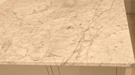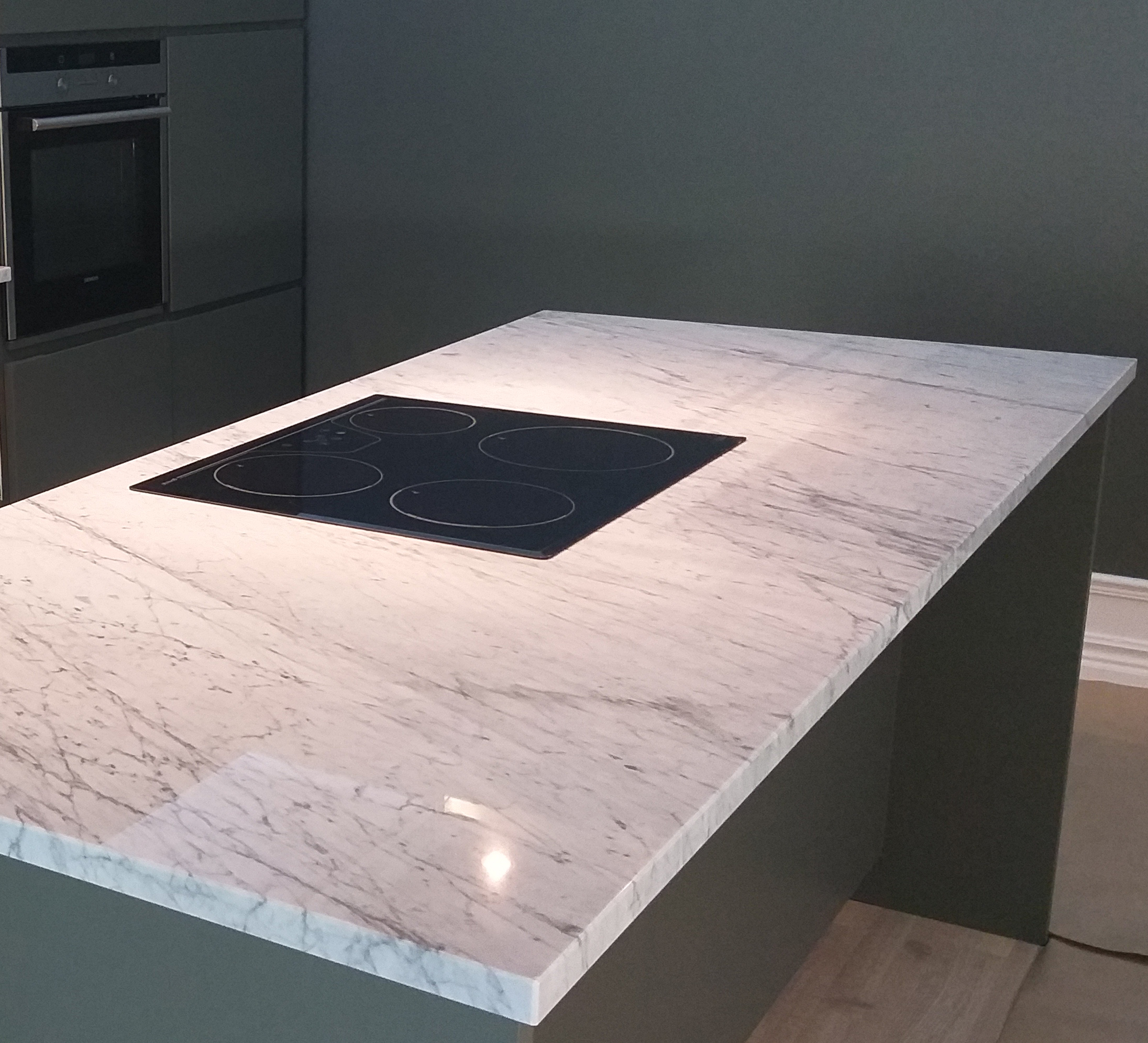 Bianco Carrara C är ett ljusare val av världens mest kända marmor. Denna klassiska ljusa italienska marmor har stått för lyx och elegans sedan antiken och har inte sjunkit i popularitet i dag heller. Den ljusgrå bakgrunden korsas av mörkare linjer som är olika för varje bänkskiva.