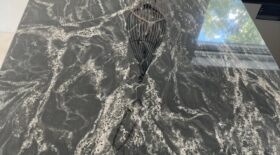 Black Forest (känd även som Lava Vecchia och Silver Paradiso) är en granit från Brasilien med en mörk fond, som pryds av vita och gråtonade linjer och vågor. Den djupsvarta, glasartat obsidianfärgade stenen är mycket motståndskraftig och är särskilt stilig som polerad, men finns självfallet även som läder/borstad eller matt/slipad ytfinish.