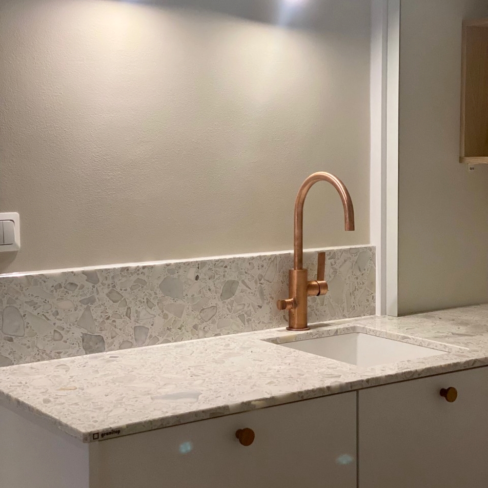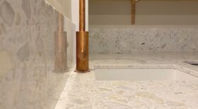 Terrazzomarmor har snabbt blivit ett populärt materialval för fönsterbrädor och trappor.