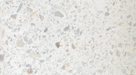 Terazzo Carrara 0/25 är en konstgjord sten, som innehåller flisor av vit marmor (Bianco Carrara C) med en storlek av 0-25 mm.