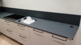 Charcoal Soapstone är mörkgrå kvartskomposit vars naturnära stenmönster kompletteras av kompositstenens utmärkta tekniska egenskaper. Äkta skönhet i harmoni med innovation!