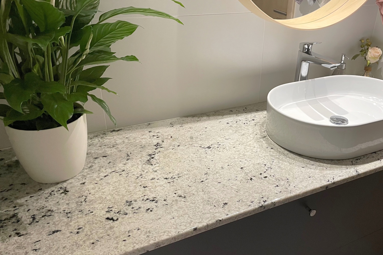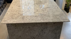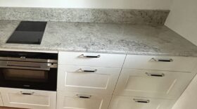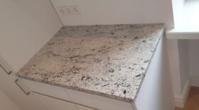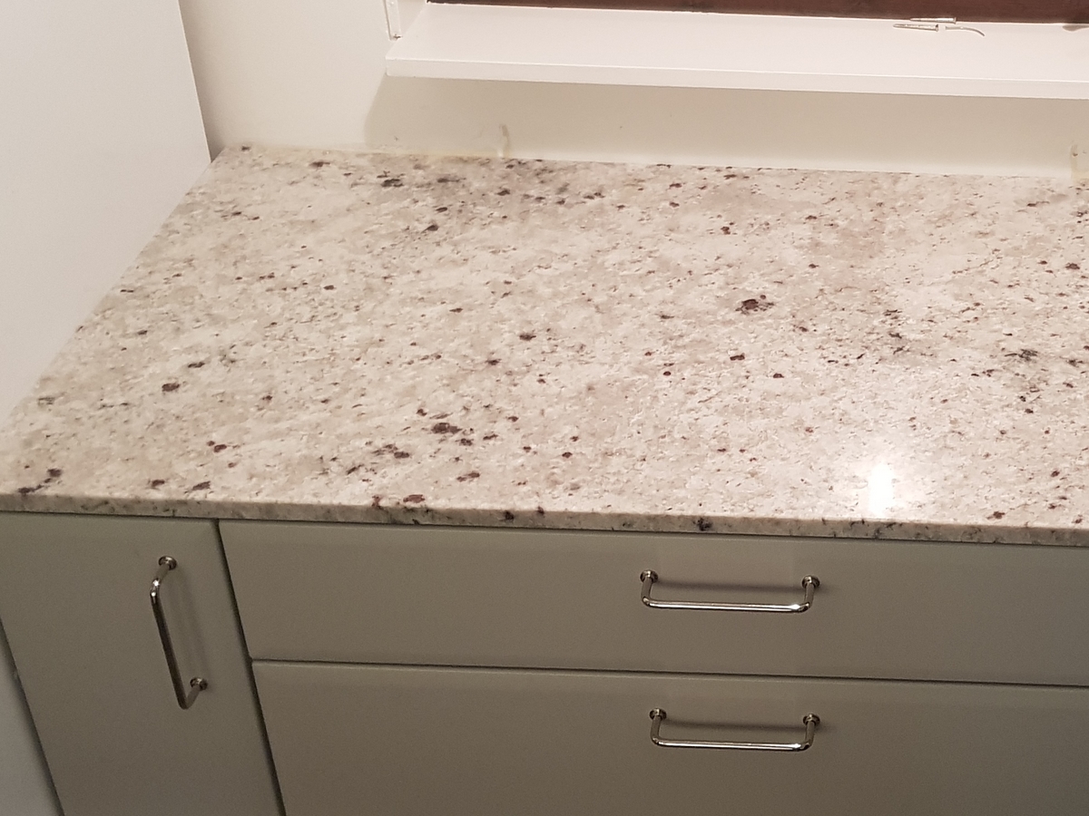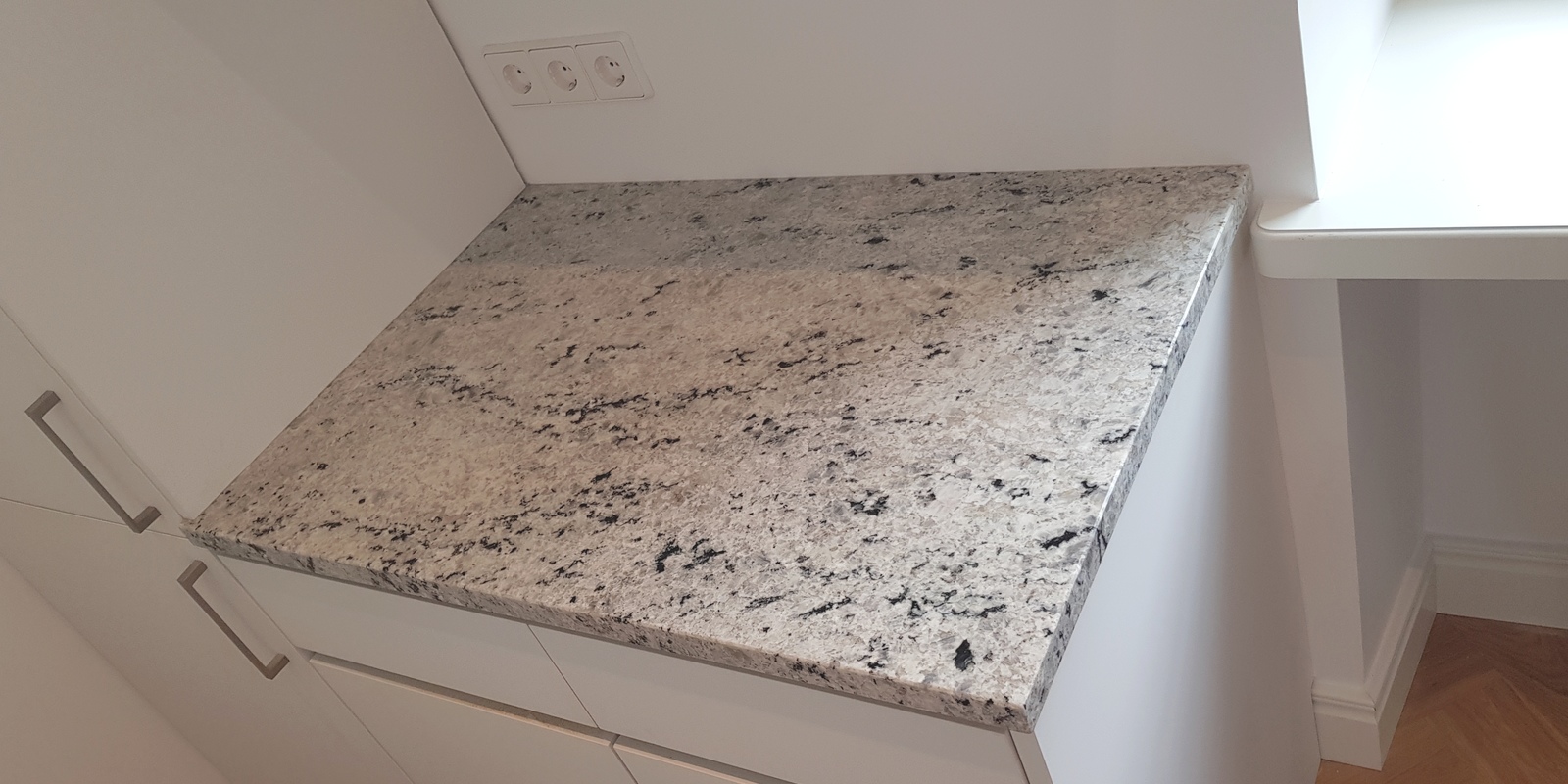 Colonial White är granit som bryts i Indien. Det är en grå sten med något kornigt mönster, som ju är kännetecknande för just granit. Den passar perfekt som bänkskiva i både kök och badrum, men även som spiselkrans och fönsterbänk.