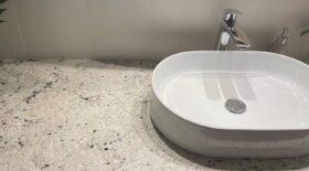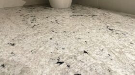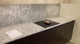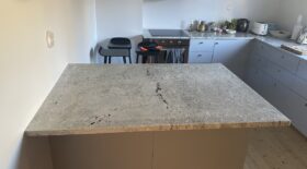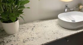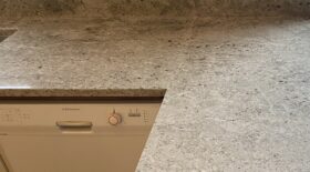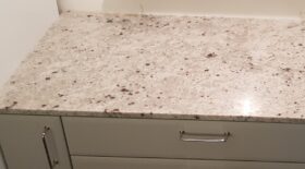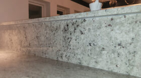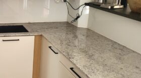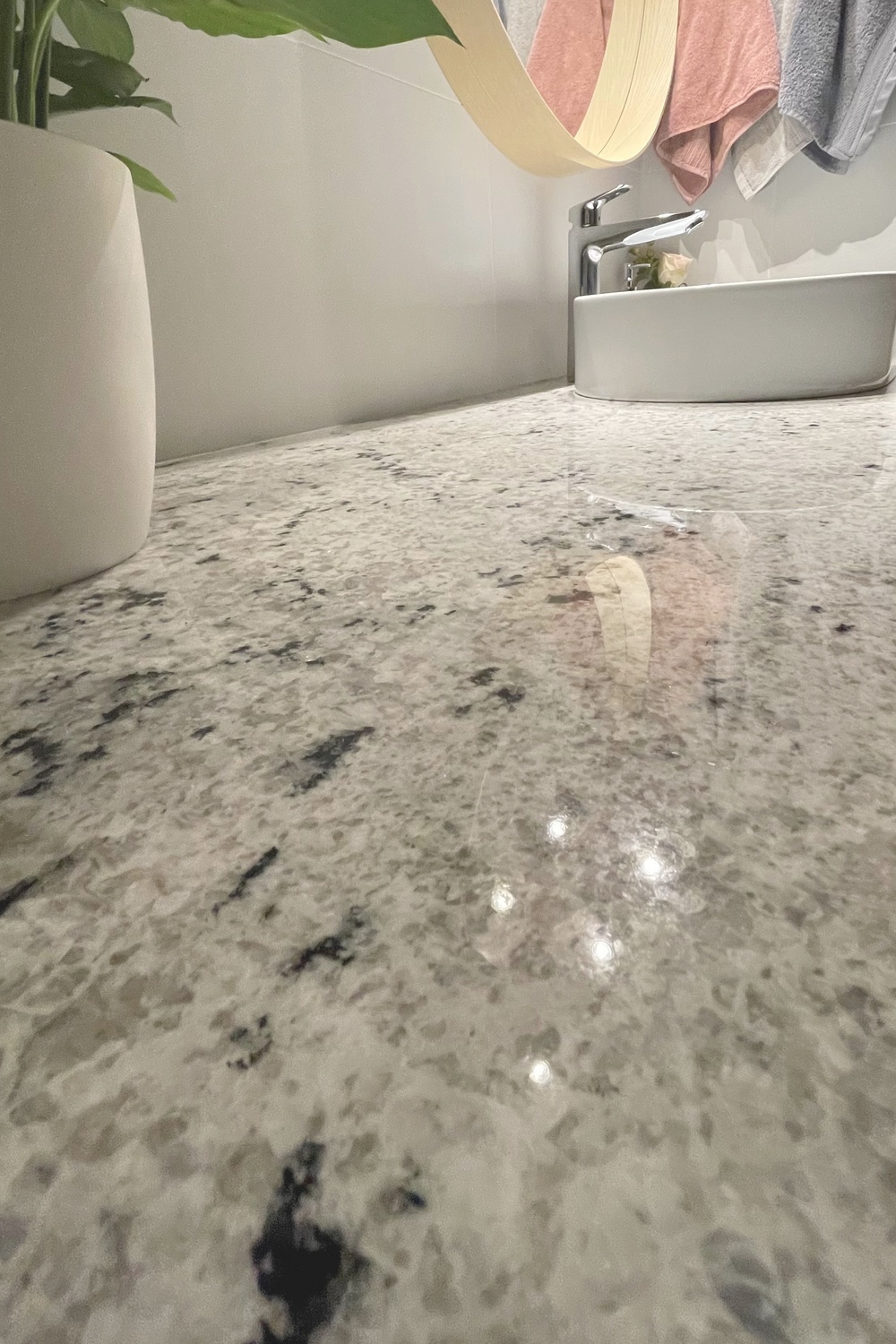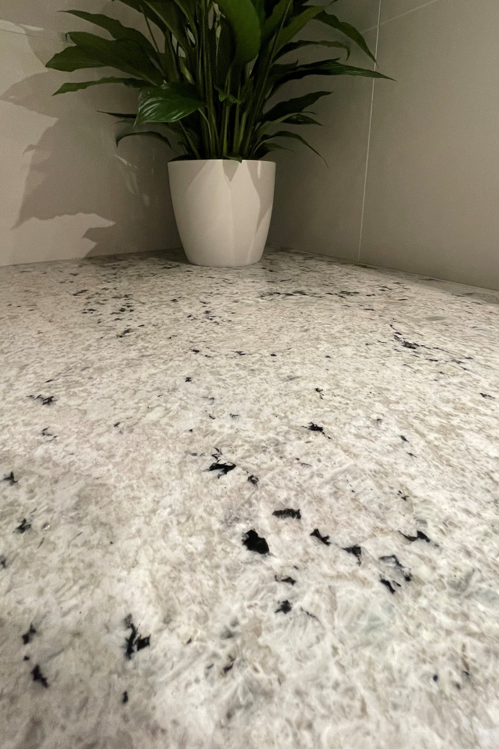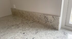 Colonial White är granit som bryts i Indien. Det är en grå sten med något kornigt mönster, som ju är kännetecknande för just granit. Den passar perfekt som bänkskiva i både kök och badrum, men även som spiselkrans och fönsterbänk.