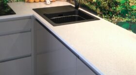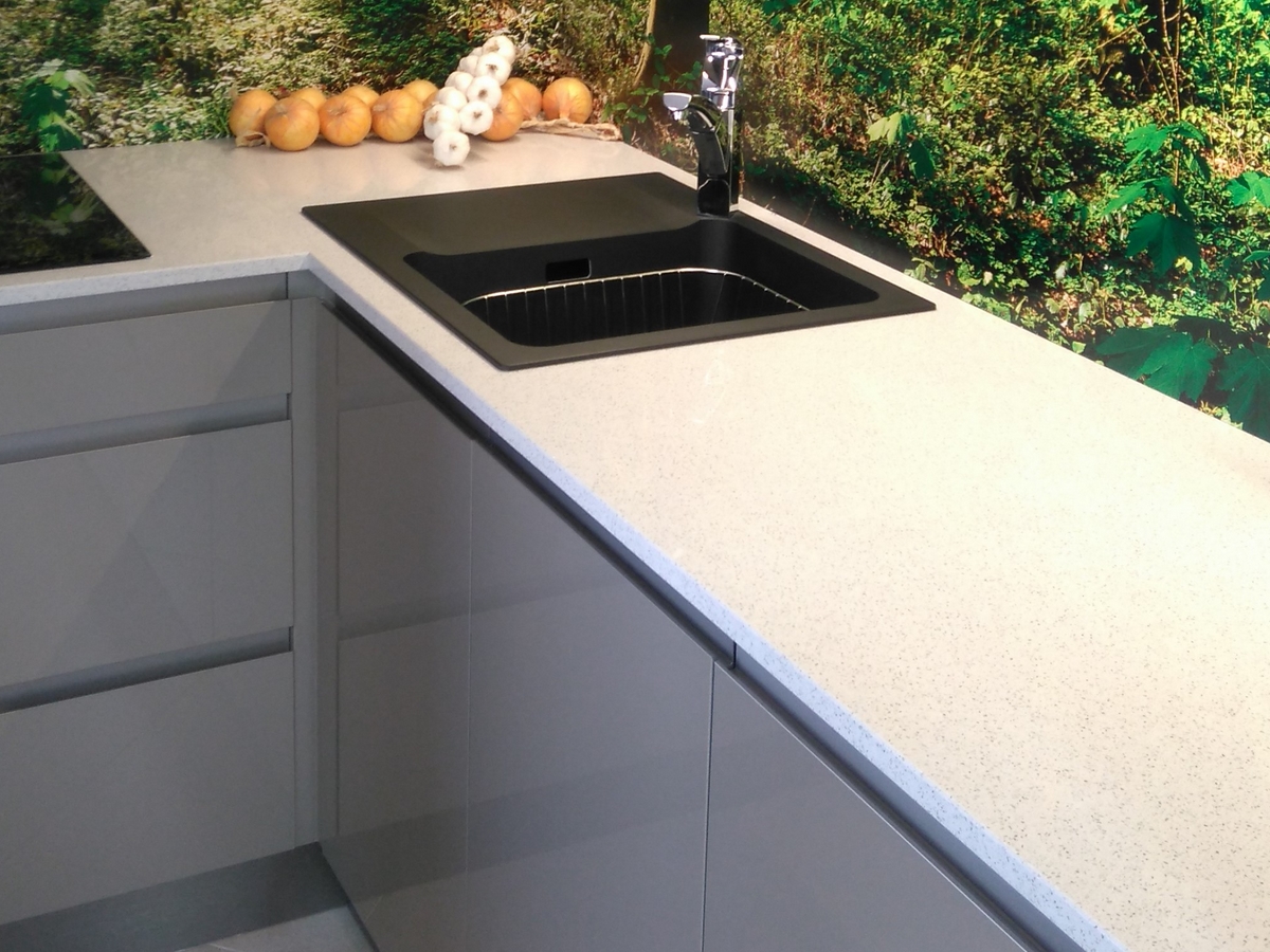 Kompositstenskivor i Elegance Eco Nev material är starka, hållbara och extremt hygienisk.