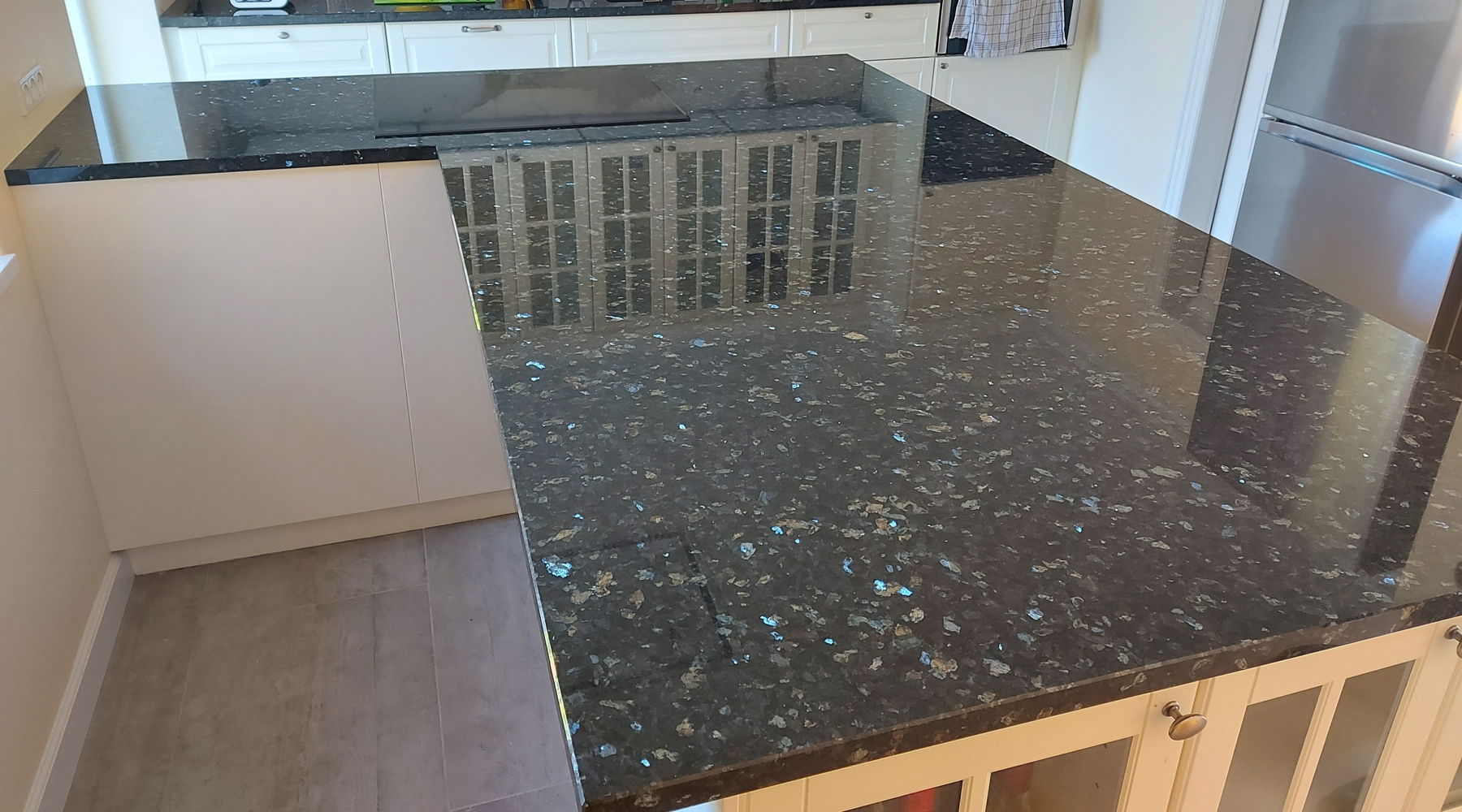 Livligheten hos granit i Emerald Pearl får varje rum att glittra och även de tråkigaste skåpluckorna blir en del av en betydande kombination.