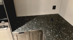 Emerald Pearl, även känd som Labrador Scuro, är en mörkgrön granit från Norge som skapar en märklig lek med färger när ljuset reflekteras på dess yta. Underbar mörkt grön-svart sten med fingertoppsstora stänk i allt från grön-guld till påfågelblå. De exotiska färgskimrande kristallerna är fantastiska tillsammans med lyxig inredning och design, vilket gör Emerald Pearl lämplig i kök, badrum och sovrum. Tack vare storleken på stänken syns inte fingeravtryck eller andra fläckar.