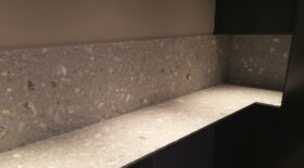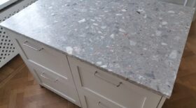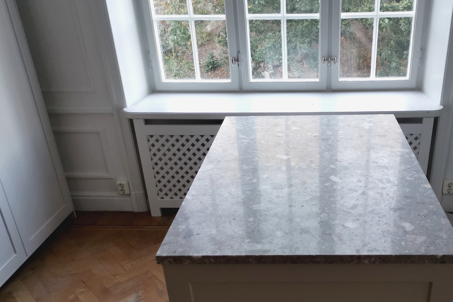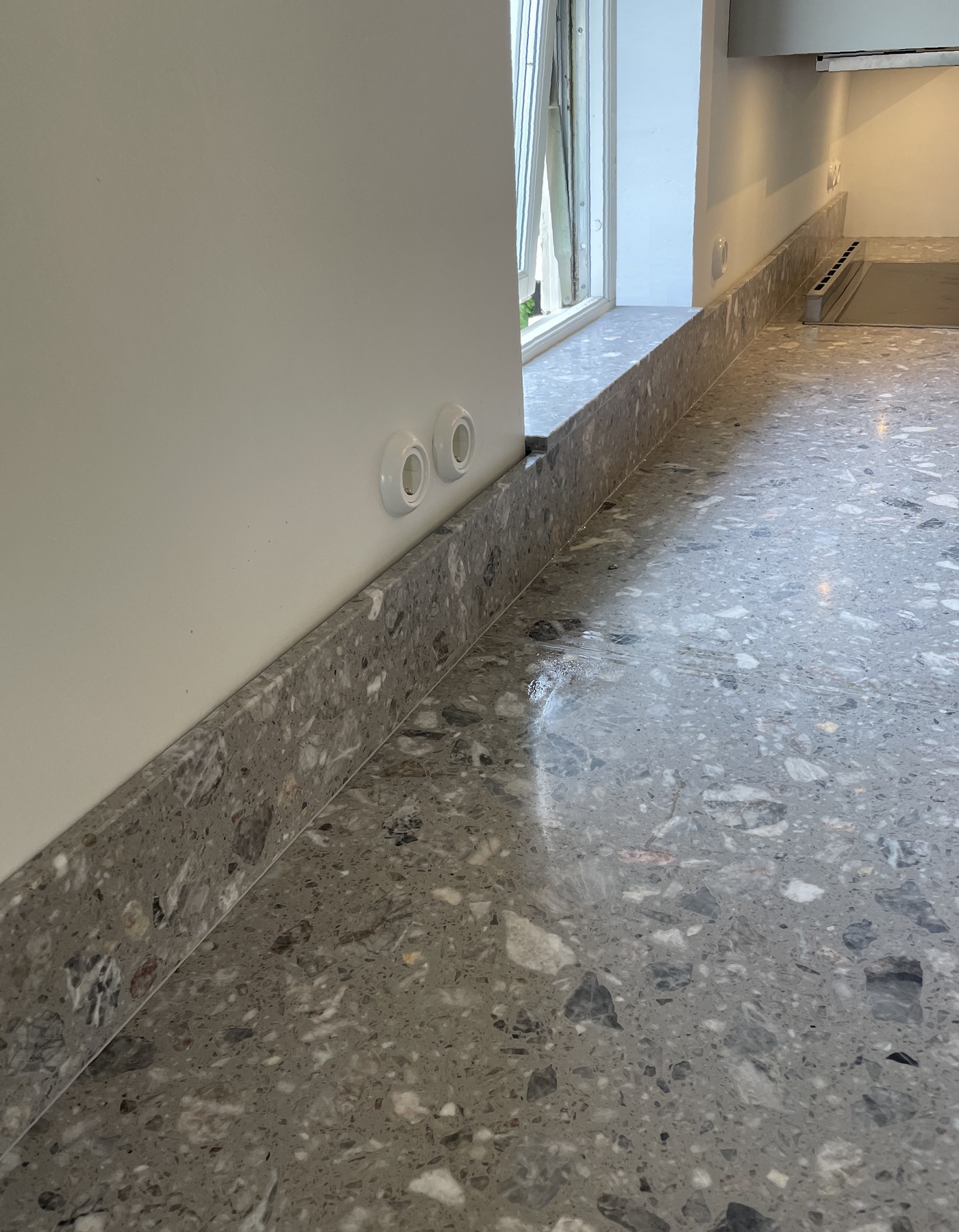 Terrazzomarmor har snabbt blivit ett populärt materialval för fönsterbrädor och trappor.