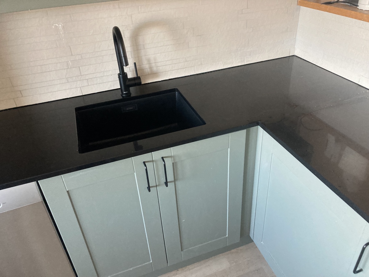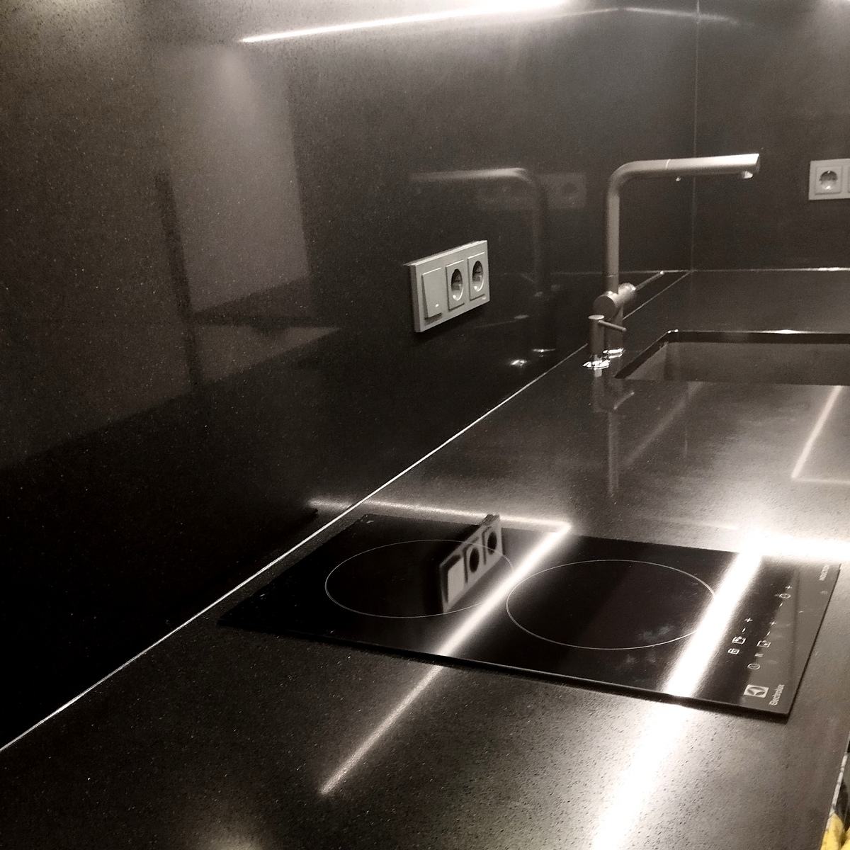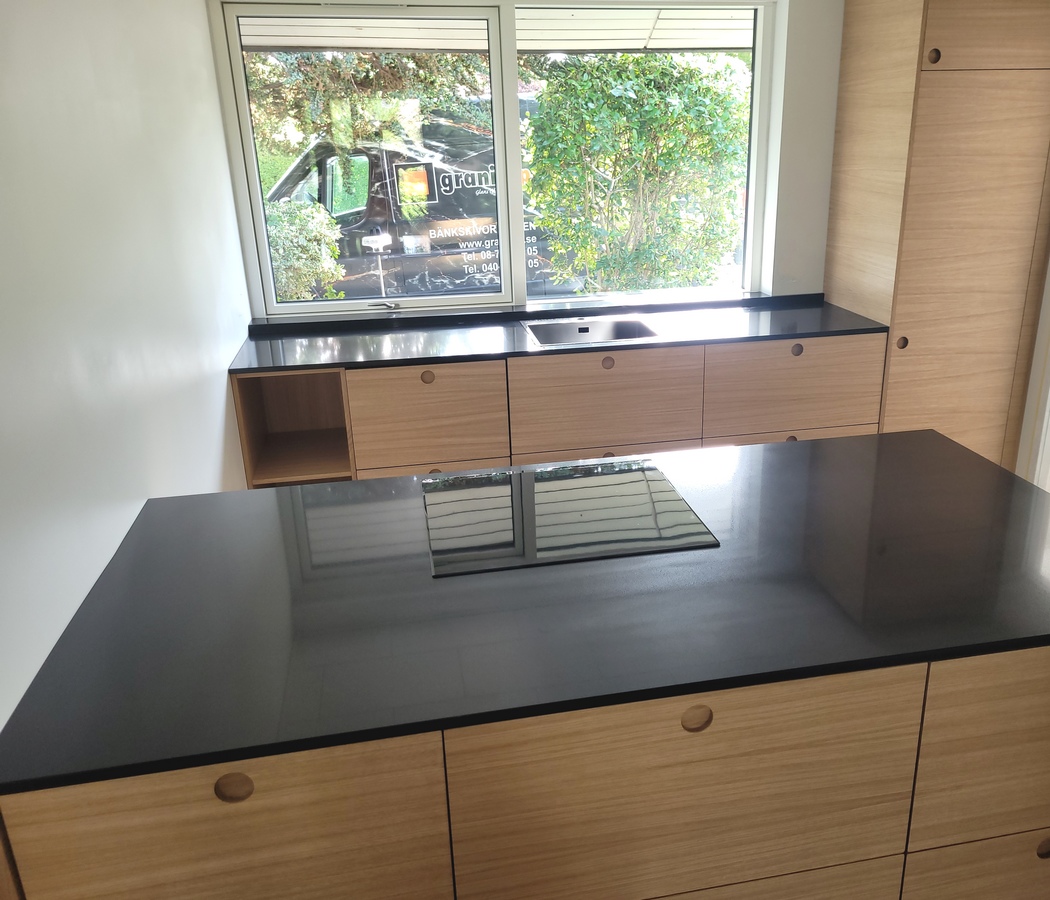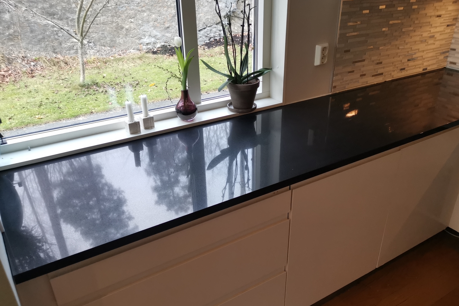 Gobi Black är en mycket tålig kompositsten med lätt kornighet och varierande blanka och matta partier som skapar en unik halvmatt effekt. Från långt håll ser den ut som en vanlig svart sten, men vid en närmare anblick ser du att ljusare partier skiner igenom en svart bakgrund. Bänkskivor i Gobi Black är perfekta till att skapa kontraster med ljusare färger.