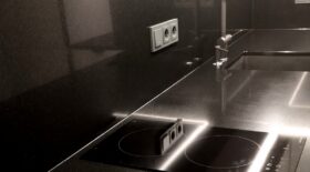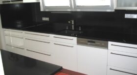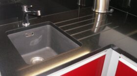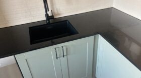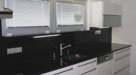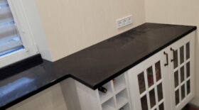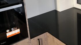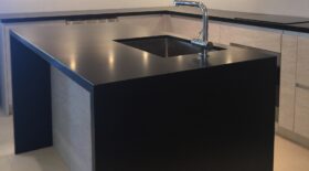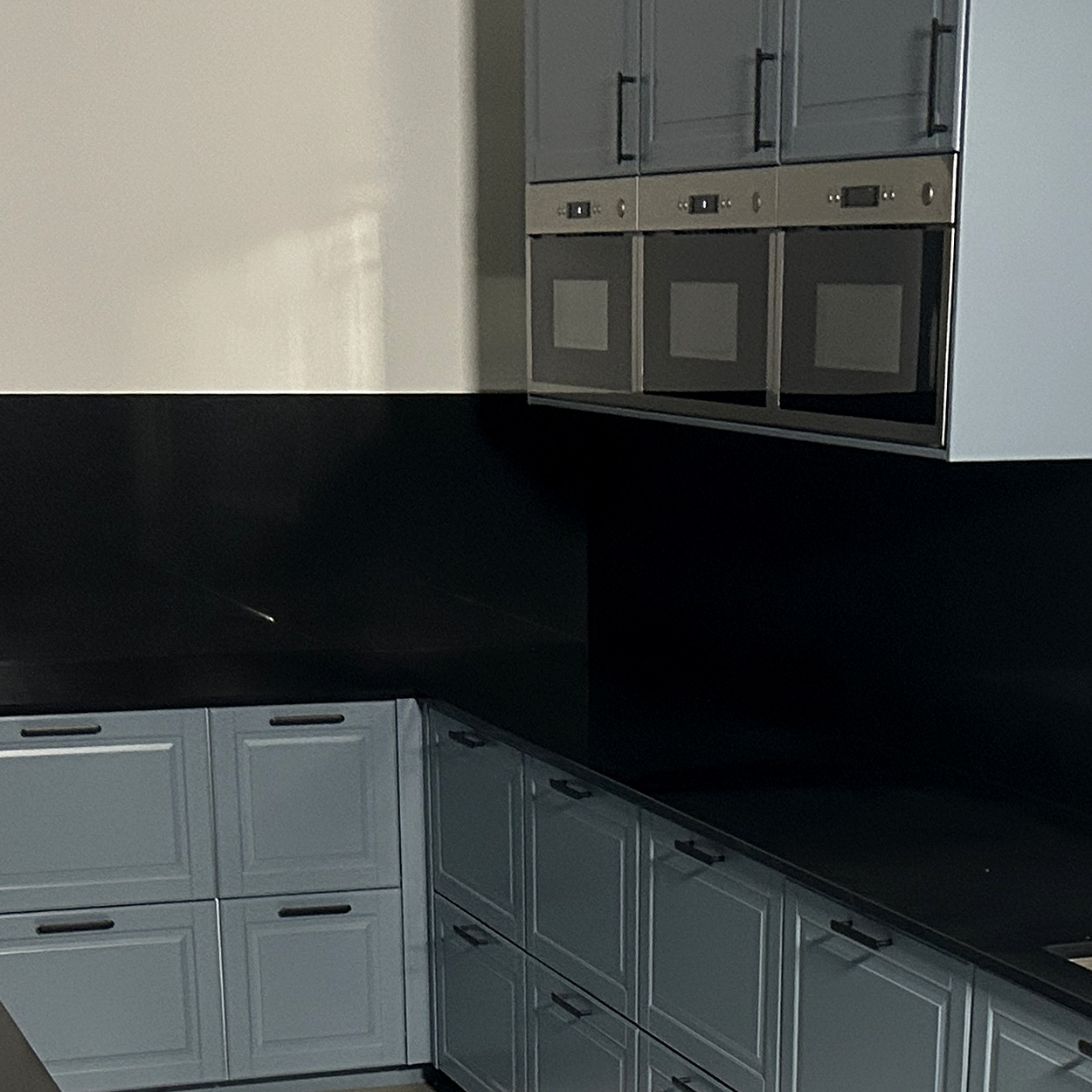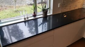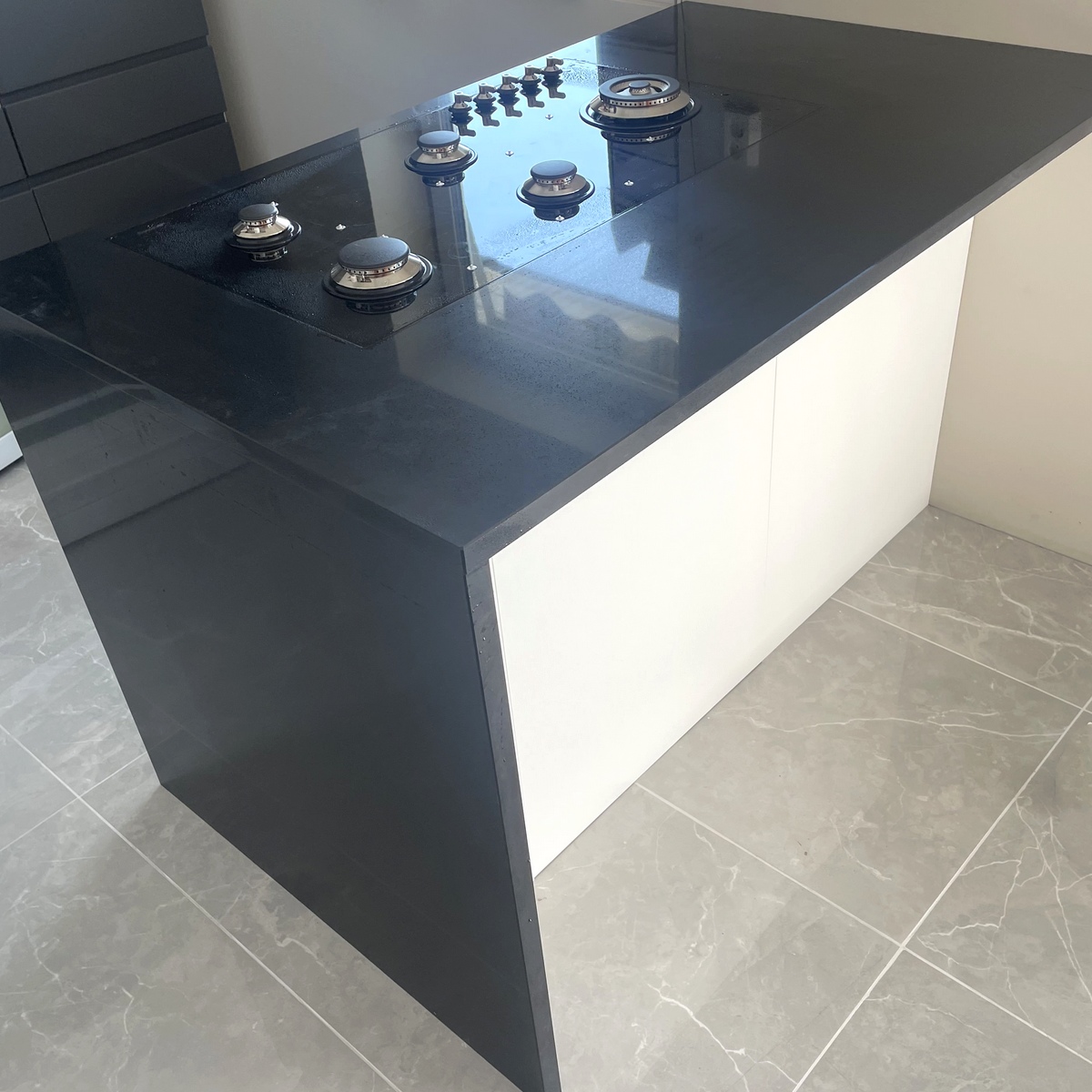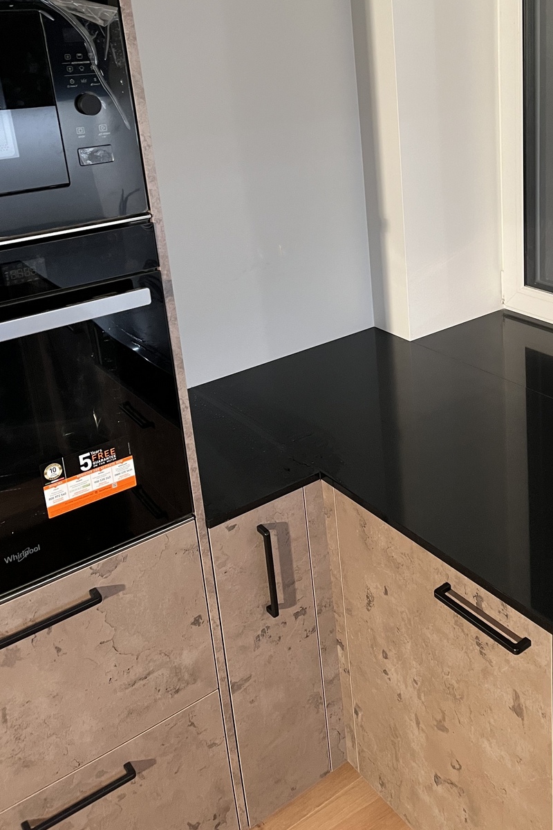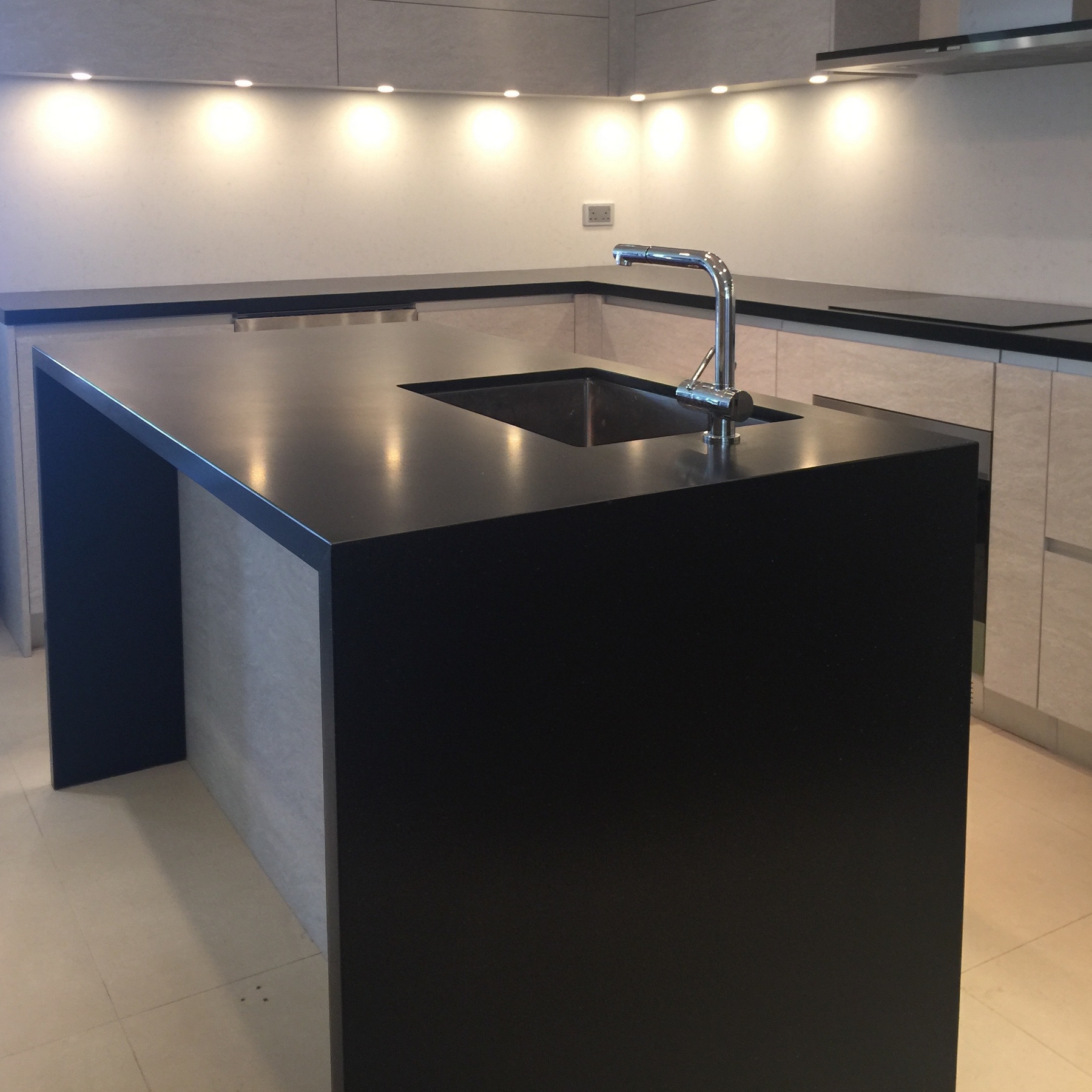 Gobi Black är en mycket tålig kompositsten med lätt kornighet och varierande blanka och matta partier som skapar en unik halvmatt effekt. Från långt håll ser den ut som en vanlig svart sten, men vid en närmare anblick ser du att ljusare partier skiner igenom en svart bakgrund. Bänkskivor i Gobi Black är perfekta till att skapa kontraster med ljusare färger.