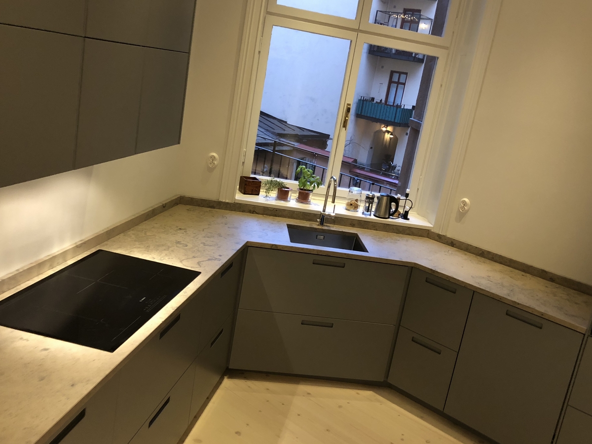 Våra professionella montörer levererar och monterar bänkskivan i ditt hem. Installationen är snabb, av hög kvalitet och korrekt