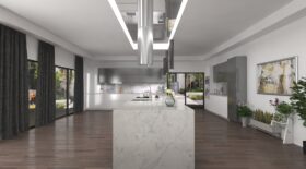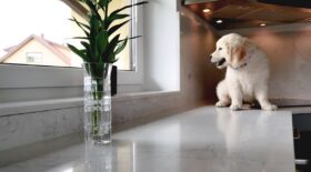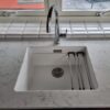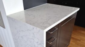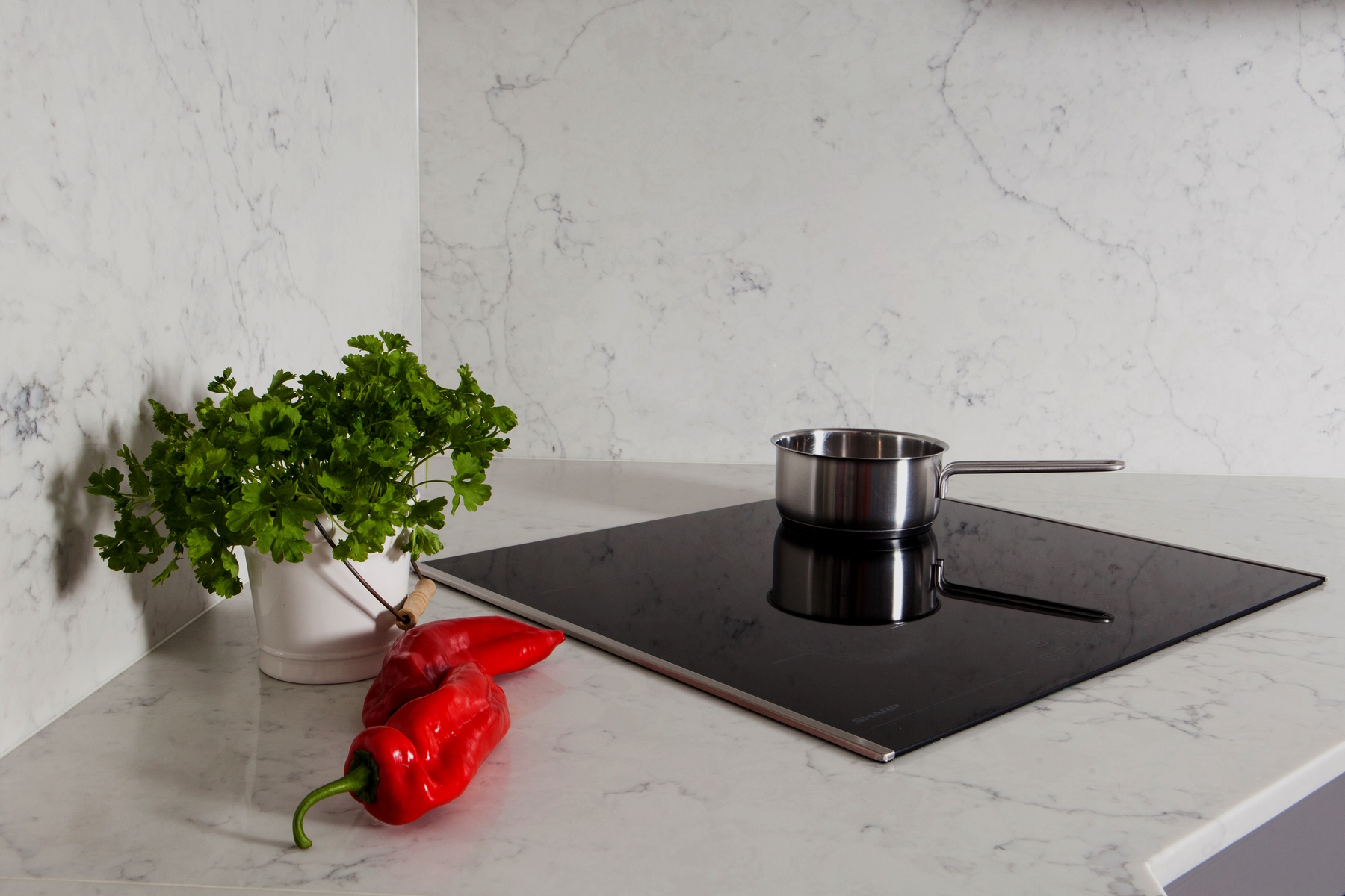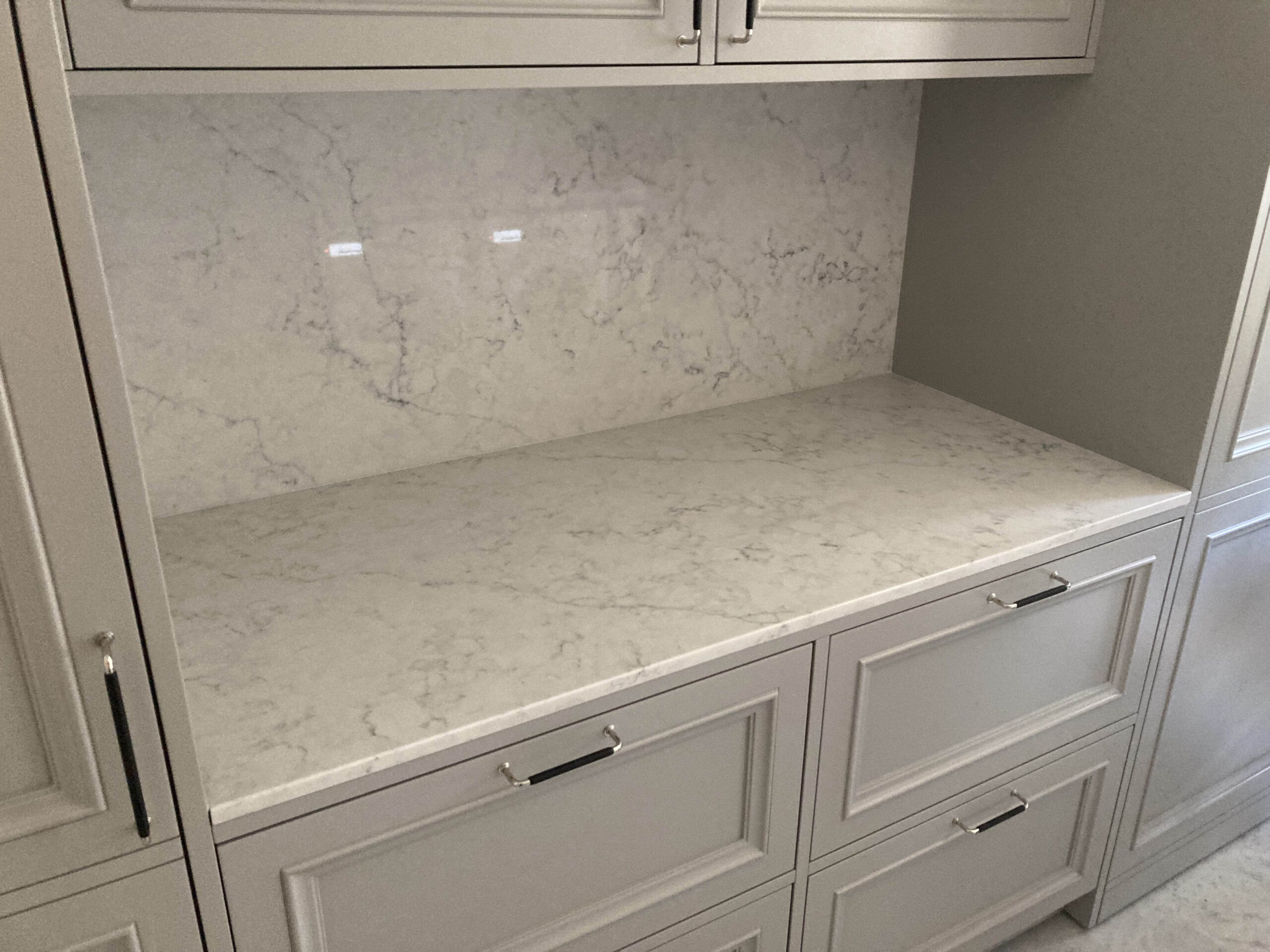 Mystery White  är kvartskomposit vars pärlvita marmorerade bakgrund kompletteras av mjukgrå linjer – vener. Kompositsten är stark, tålig och icke-porös, detta gör kvartsstenen mycket hygienisk.