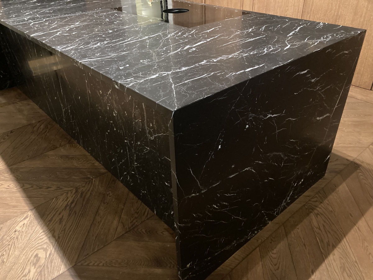 Nero Marquina – iögonfallande spansk marmor med vita linjer på svart bakgrund. Stenen ger elegant livlighet och stil, perfekt i varje kombination.
