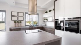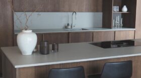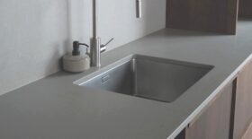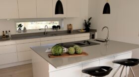 Noble Concrete Grey är kalkstensliknande kompositsten i betonggrå färg. Kompositstenskivor i Noble Concrete Grey material är starka, hållbara och extremt hygienisk! Den grå färgen ger köket en modern och lugn bakgrund och förhöjer alla andra föremåls djärvare färger.