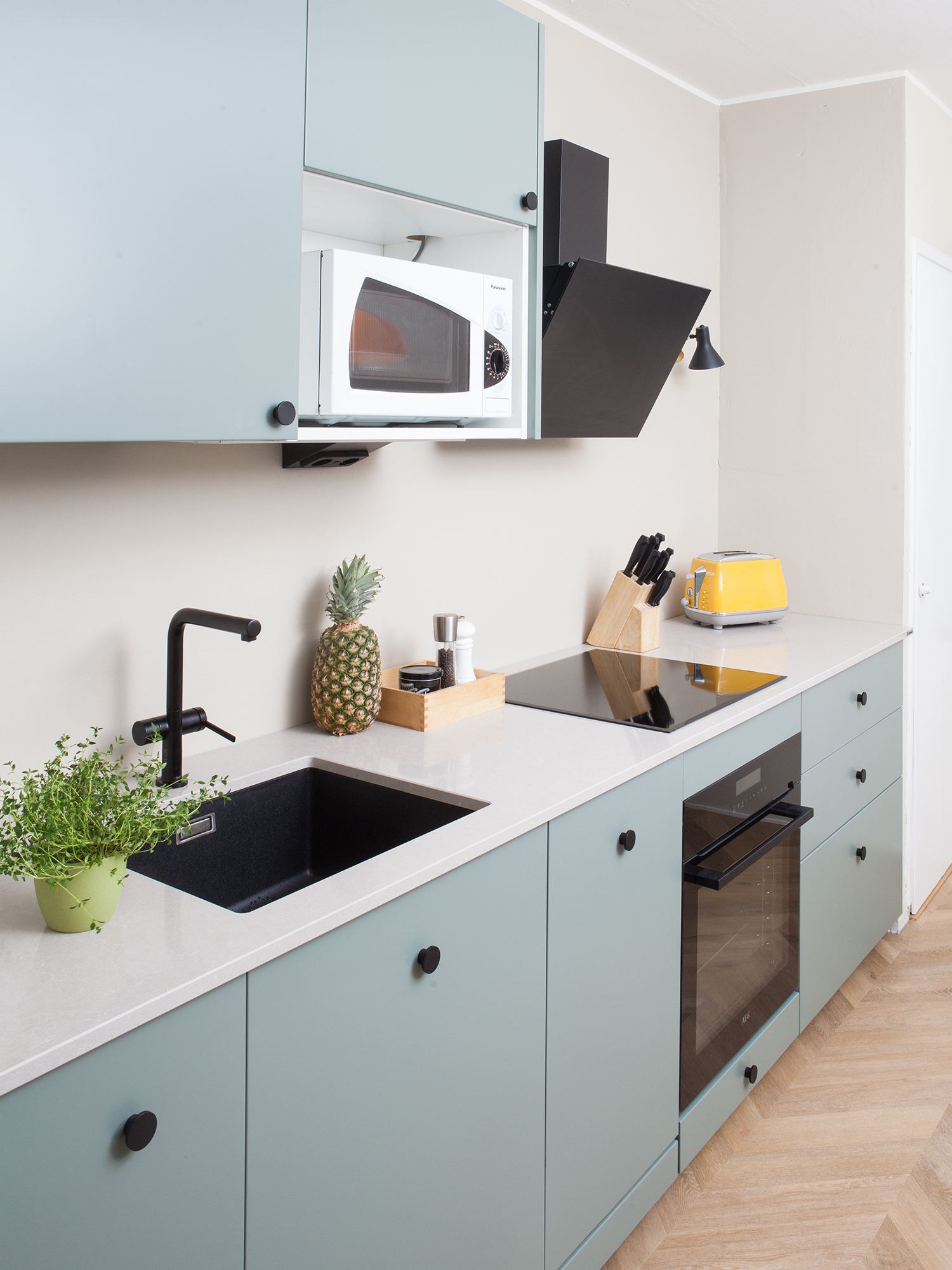 Våra professionella montörer levererar och monterar bänkskivan i ditt hem. Installationen är snabb, av hög kvalitet och korrekt