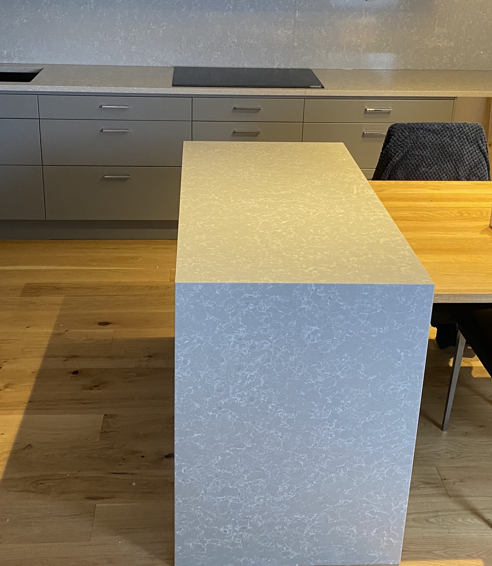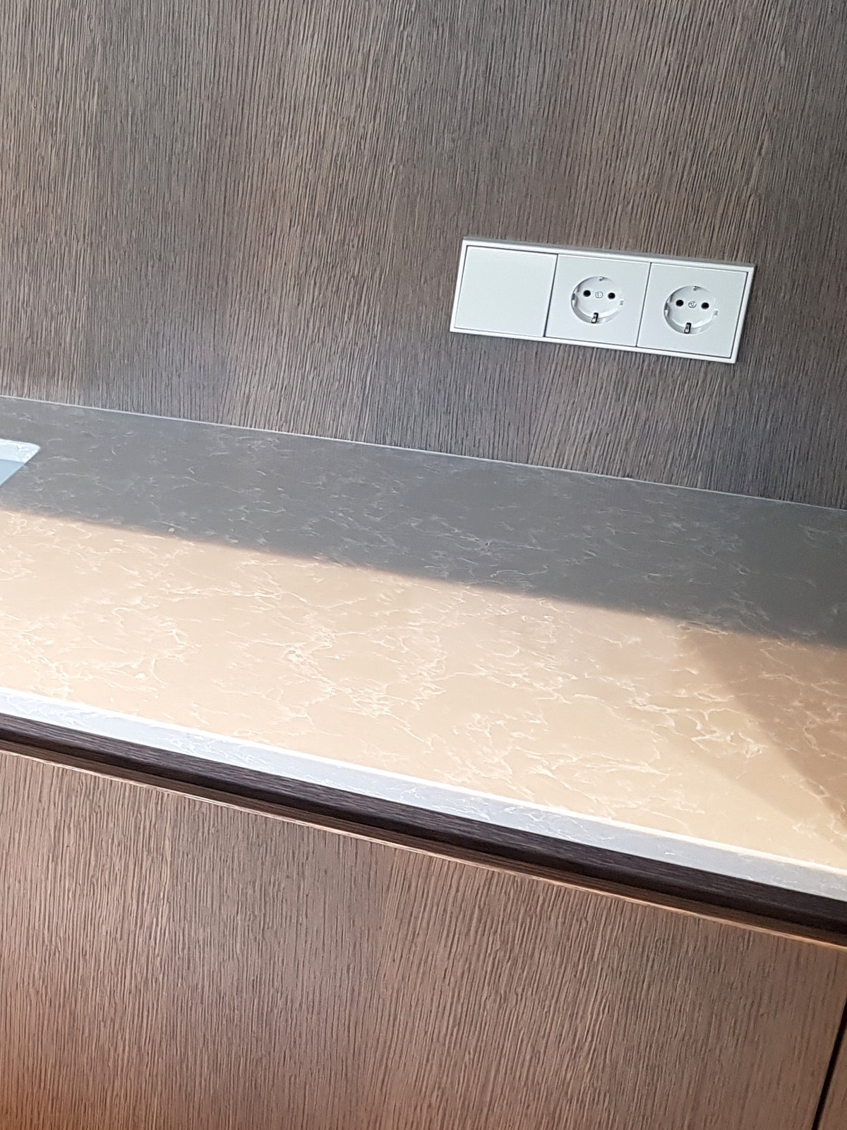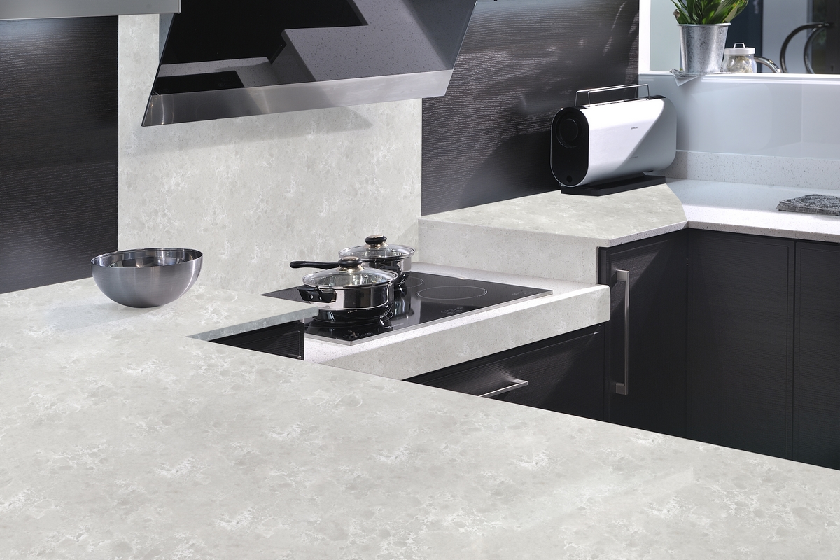 Kompositstenskivor i Noble Olympos Mist material är starka, hållbara och extremt hygienisk. Under senare år har bänkskivor av kompositsten blivit alltmer populära i formgivna kök. Kvarts består av ca 93 % naturlig kvartssand.