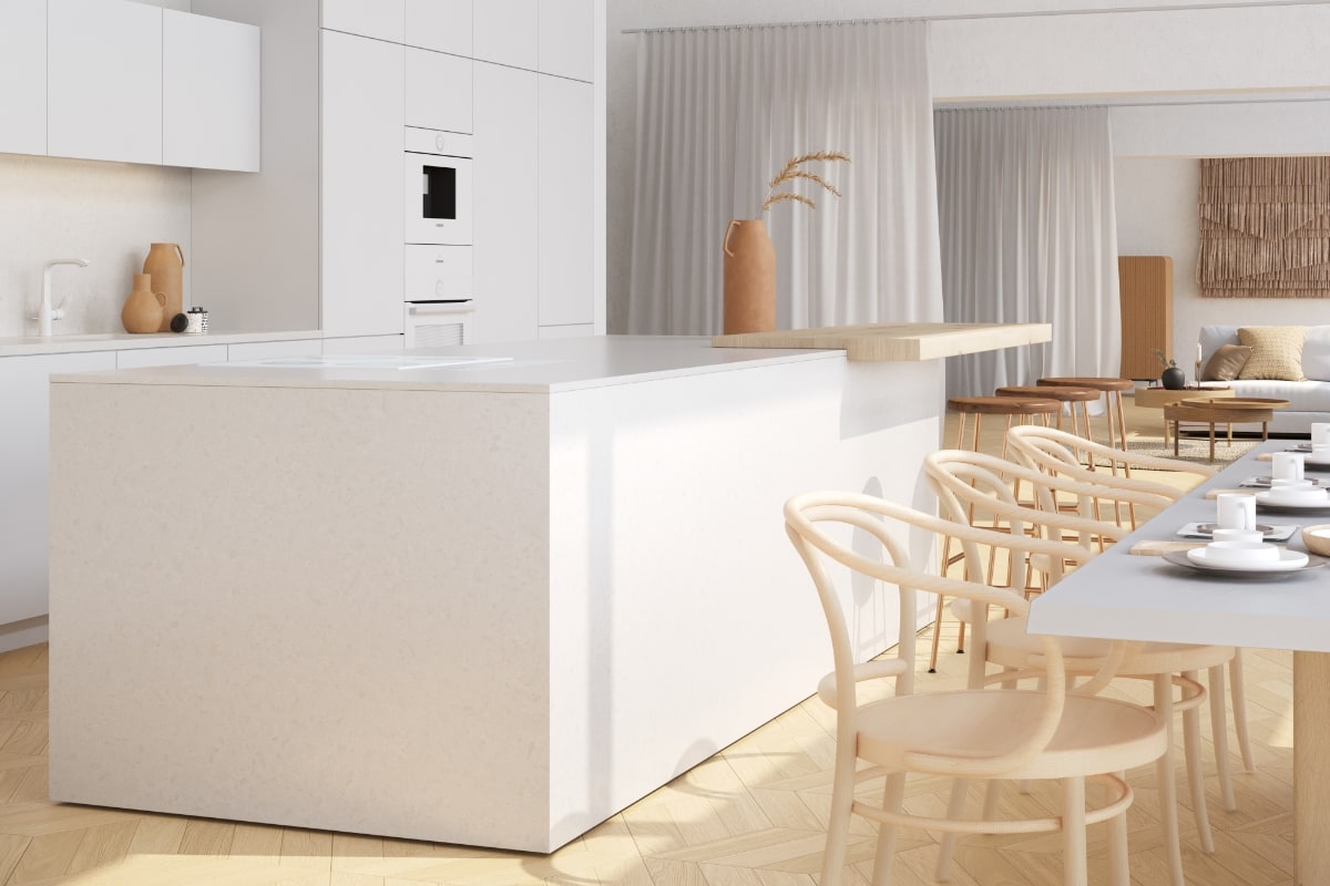 Noble Quartzite – en kvartssten med en försiktig ton, som tillför rummen både skimmer och ljus. Med en inspiration från naturlig kvartsit är den mycket passande för dem som samtidigt önskar njuta av både naturens skönhet och den konstgjorda stenens fysikaliska egenskaper.