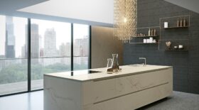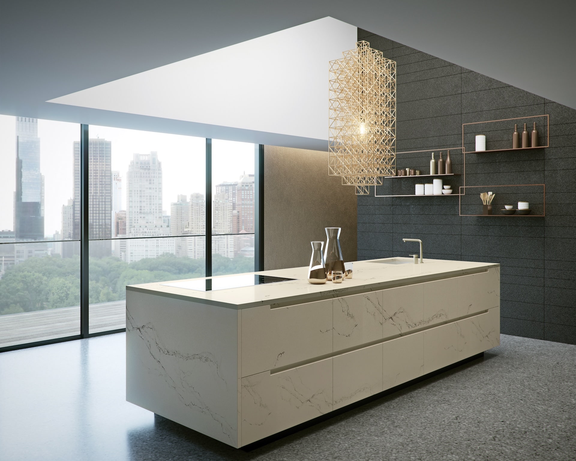 Statuario Nuvo är en kvarts som även den påminner om vit marmor. Dess krämfärgade ljusa bakgrund kompletteras av ådror i mjuka bruna toner, så typiskt för klassisk marmor. Denna kvartssten har ett större mönster, jämfört med andra marmormönstrade kvartsstenar i Supernatural-kollektionen.