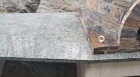 Verde Savana är grön brasiliansk granit med sprudlande mönster.