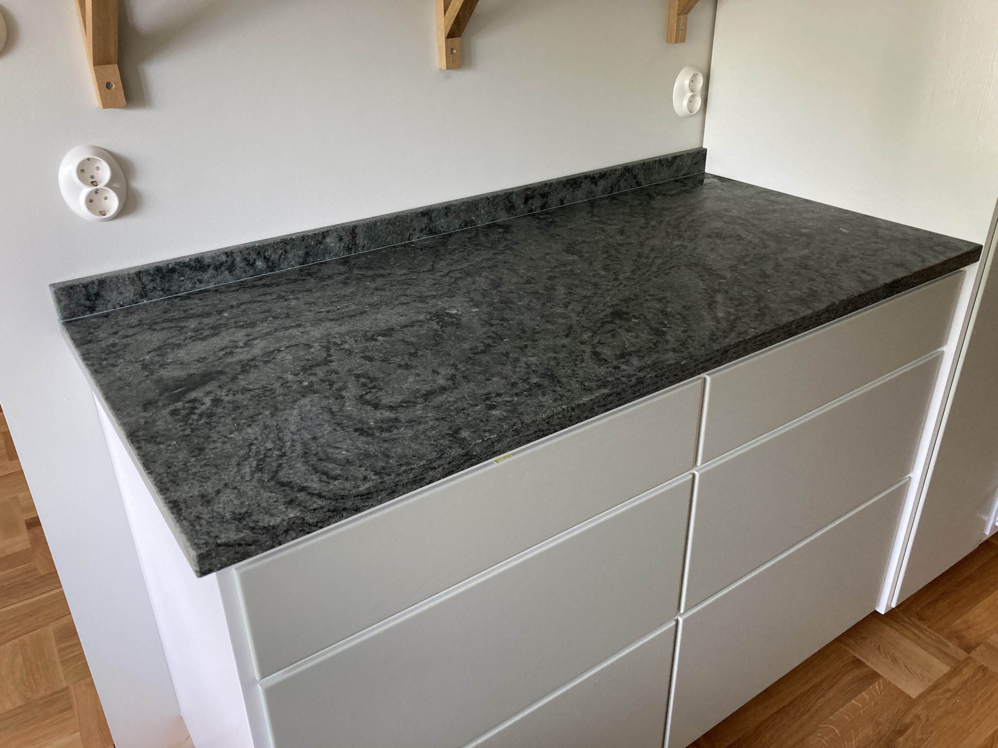 Granit är en naturlig sten som bildades för flera miljoner år sedan och utmärker sig genom sin skönhet, styrka och hållbarhet. Bänkskivor i granit kommer inte bli slitna och tål höga temperaturer. Varje bänkskiva är unik eftersom det är omöjligt att få två ytor med samma mönster.
