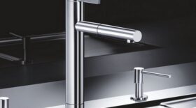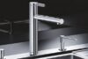 Urvalet av blandare inkluderar duschhuvud (bokstaven S i produktnamnet), blandare som kan sänkas ner i bänkskivan (F) och blandare med diskmaskinskran (A). För ett ännu mer elegant resultat föreslår vi tvålpumpar som integreras i bänkskivan och som kan användas för lagring av diskmedel eller flytande tvål.