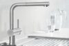 Urvalet av blandare inkluderar duschhuvud (bokstaven S i produktnamnet), blandare som kan sänkas ner i bänkskivan (F) och blandare med diskmaskinskran (A). För ett ännu mer elegant resultat föreslår vi tvålpumpar som integreras i bänkskivan och som kan användas för lagring av diskmedel eller flytande tvål.